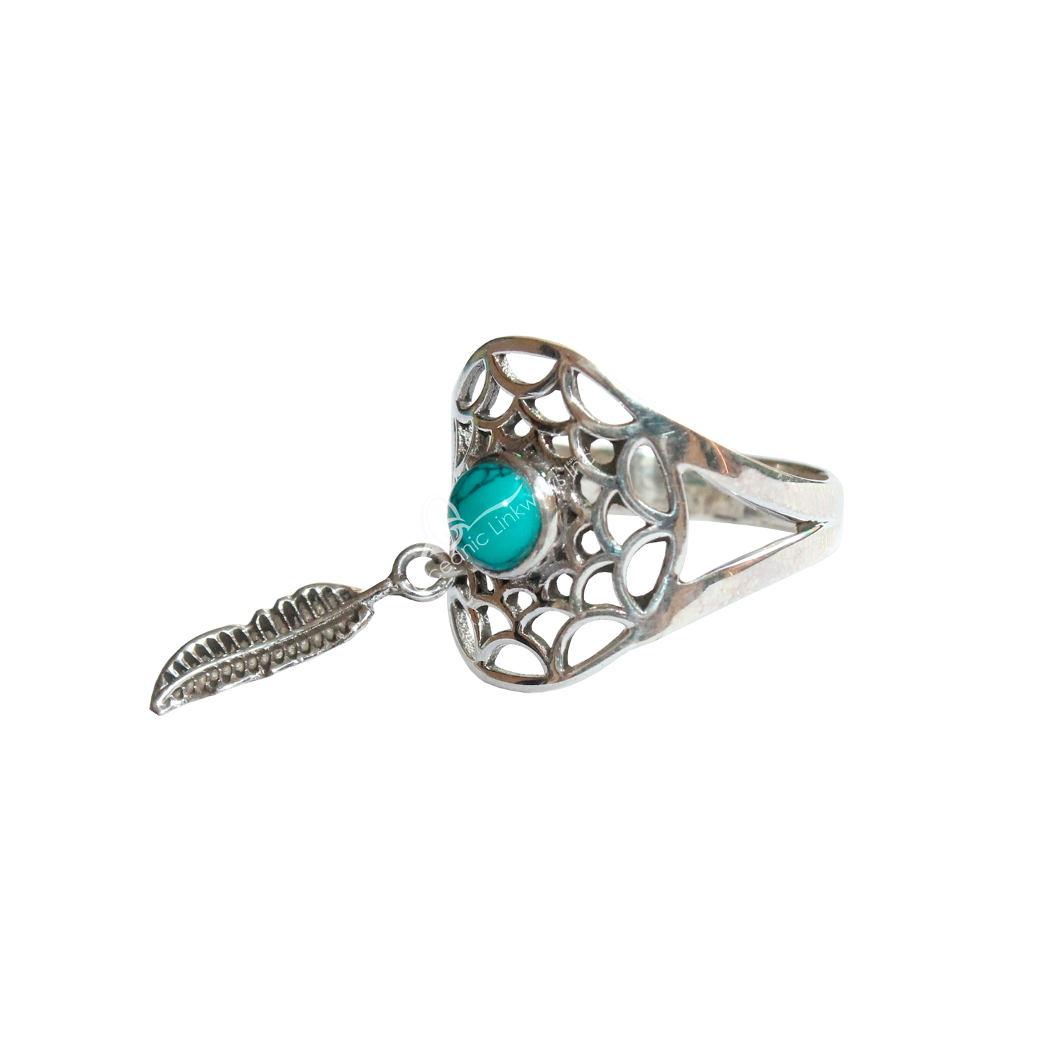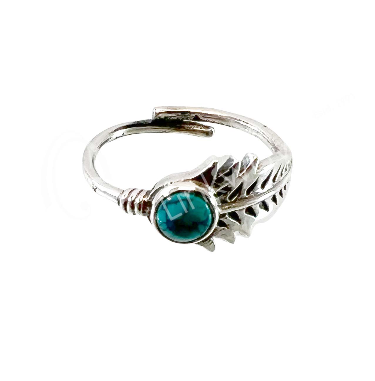 STERLING SILVER – RING, ADJUSTABLE FEATHER TURQUOISE