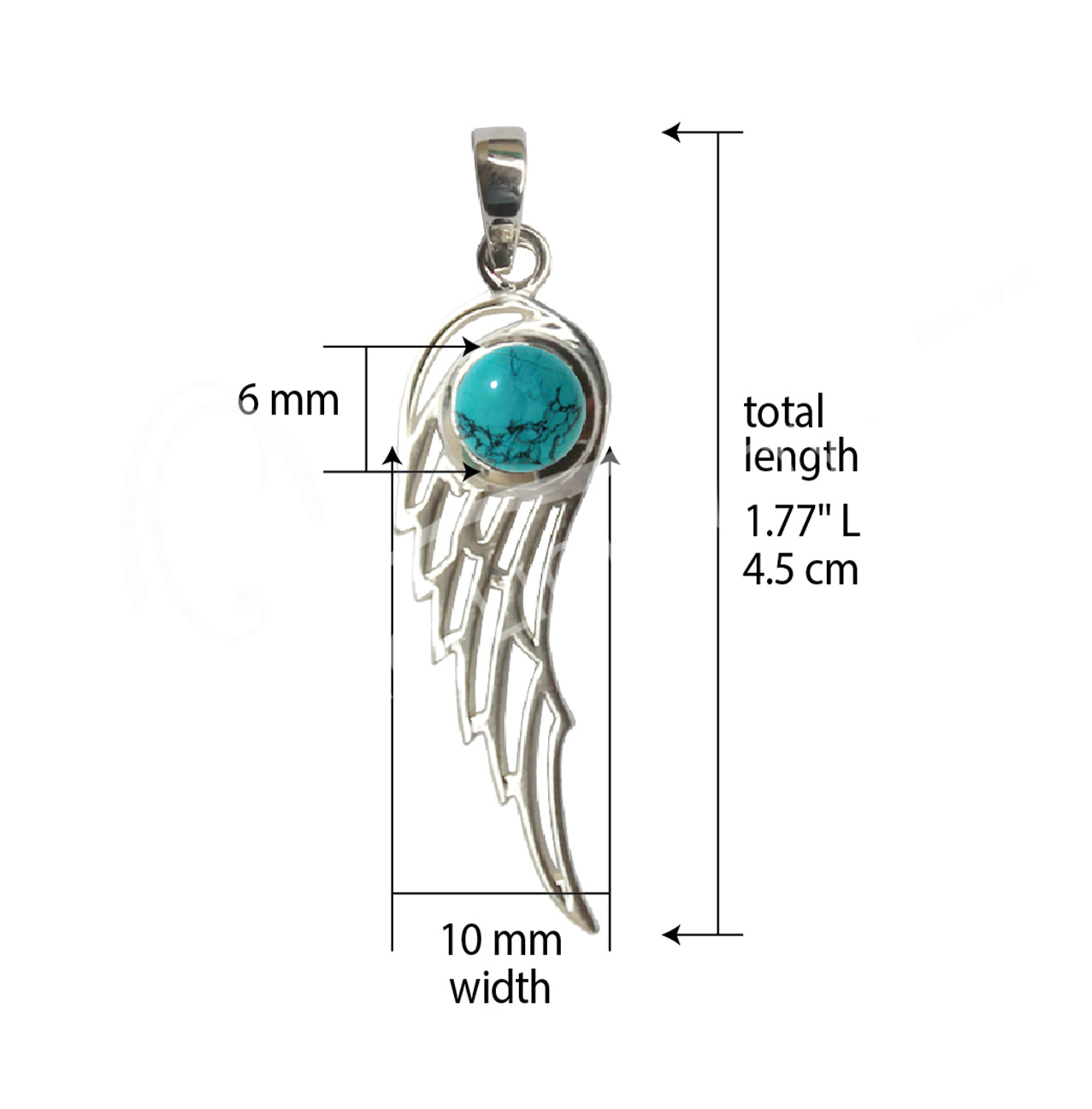 STERLING SILVER – PENDANT ANGEL WING TURQUOISE 1.75″L