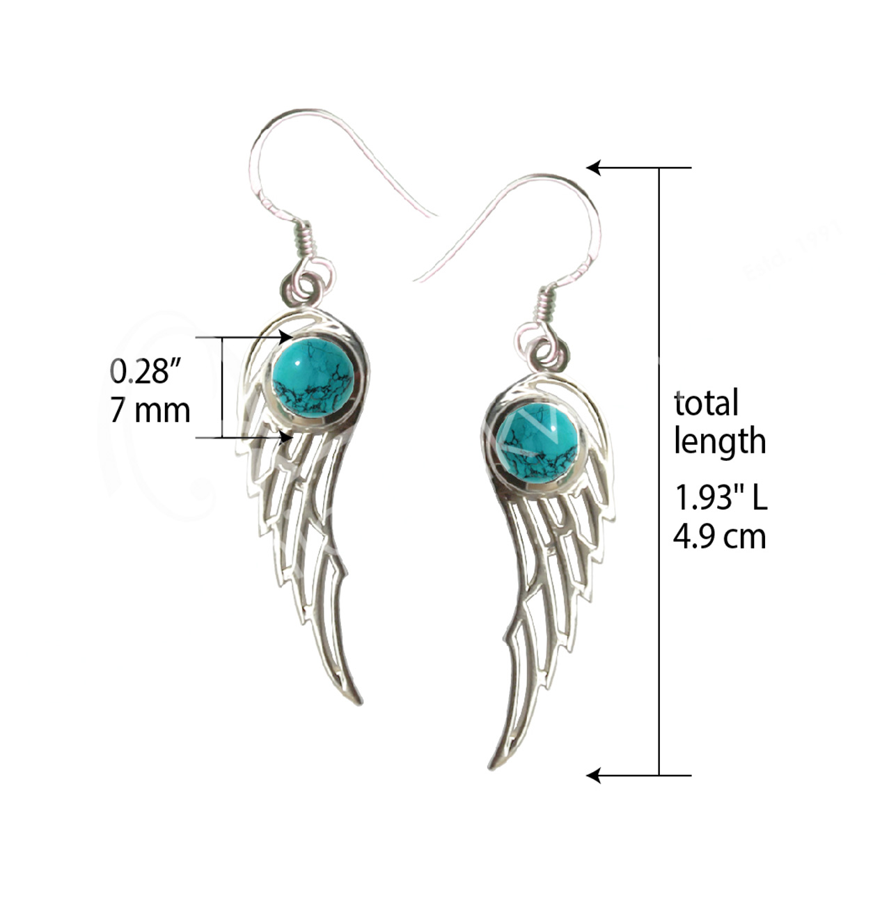 STERLING SILVER – EARRINGS ANGEL WING TURQUOISE 1.25″