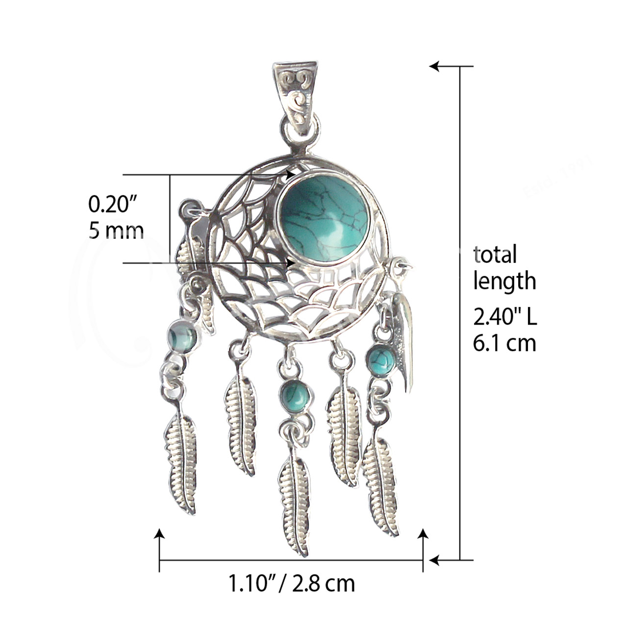 STERLING SILVER – PENDANT DREAMCATCHER TURQUOISE 2.5″
