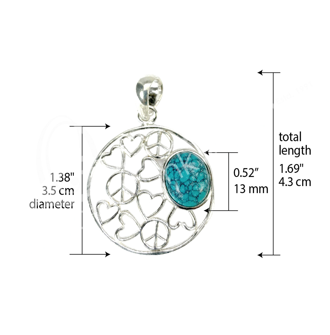 STERLING SILVER – PENDANT PEACE & LOVE TURQUOISE 1.6″