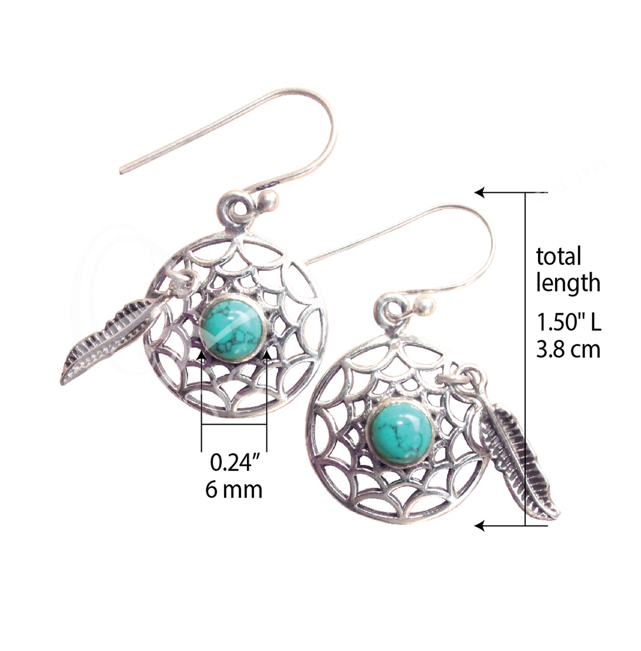 STERLING SILVER – EARRINGS DREAMCATCHER TURQUOISE 2.5″