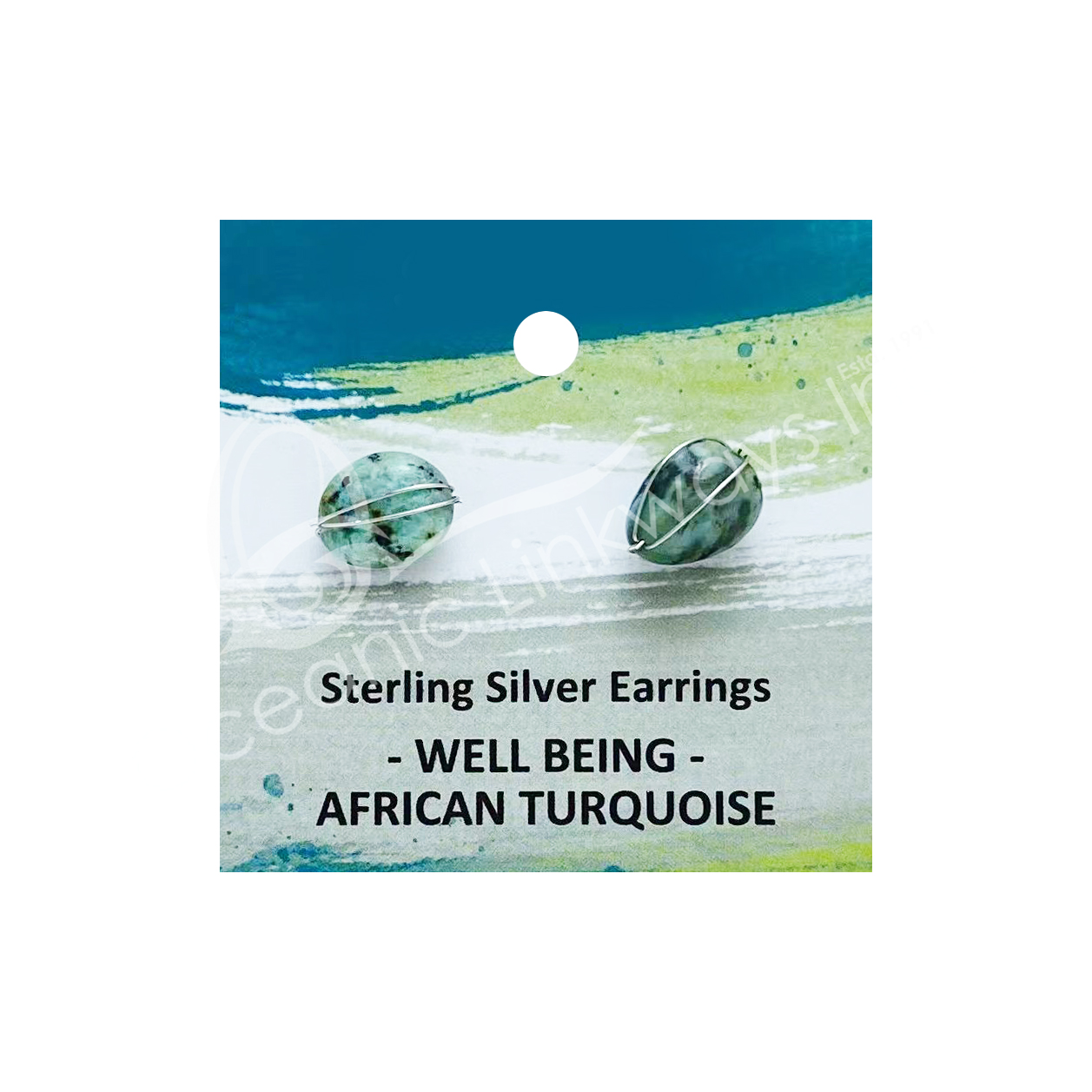 (CLOSE OUT) STERLING SILVER – EARRING STUDS TURQUOISE, AFRICAN WIRE WRAP 7-8 MM