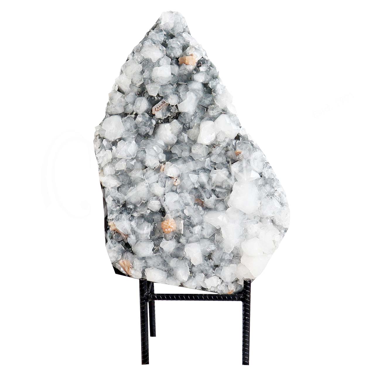 (CLOSE OUT) SPECIMEN – APOPHYLLITE & STILBITE, MIXED COLORS ON METAL STAND 18 X 12″