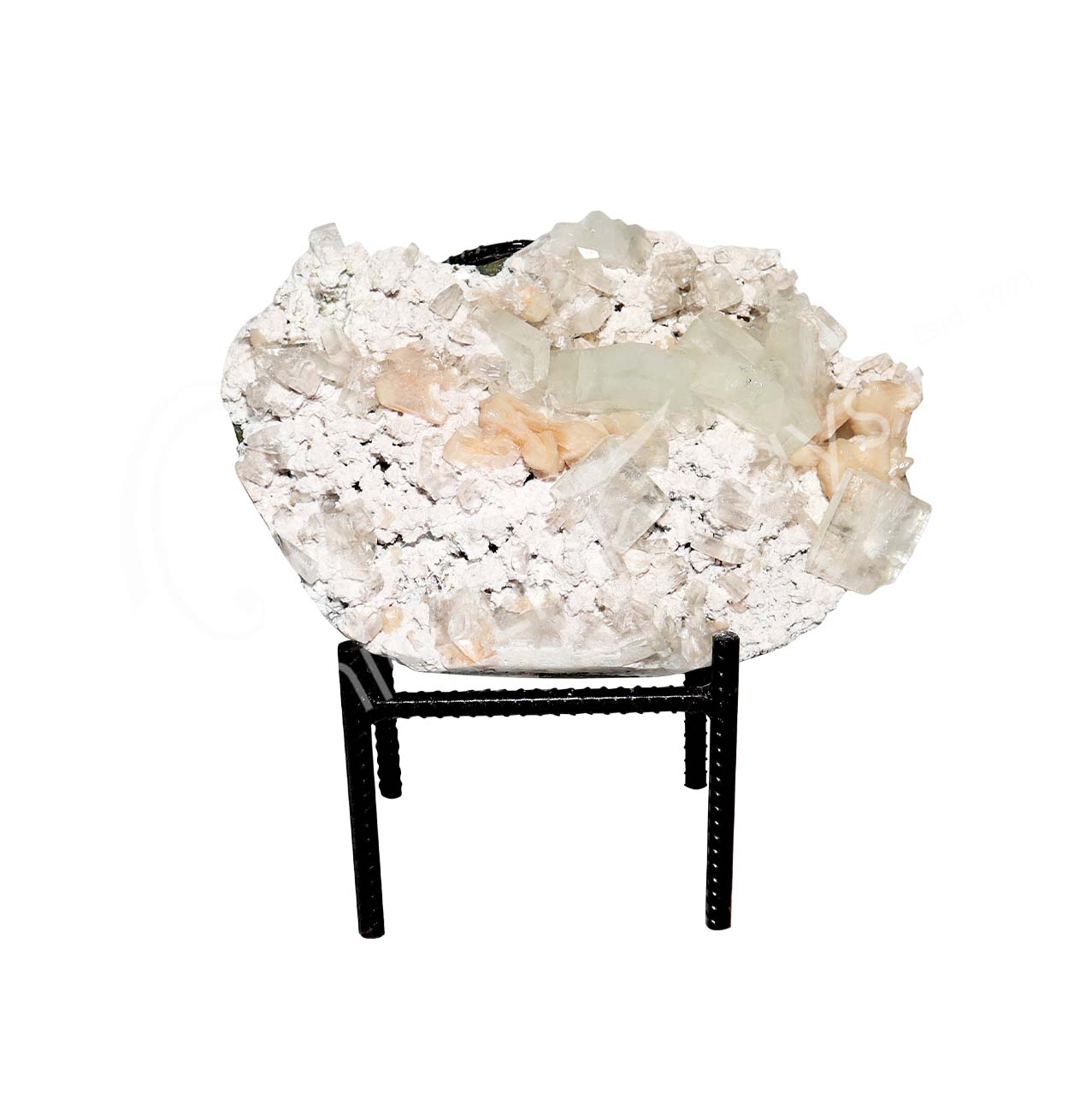 (CLOSE OUT) SPECIMEN – APOPHYLLITE & STILBITE ON MATRIX WITH METAL STAND 7.5 X 13″