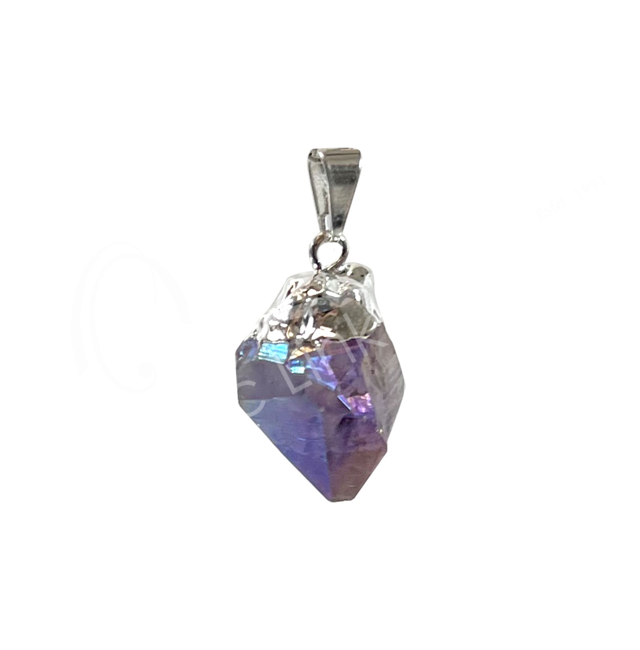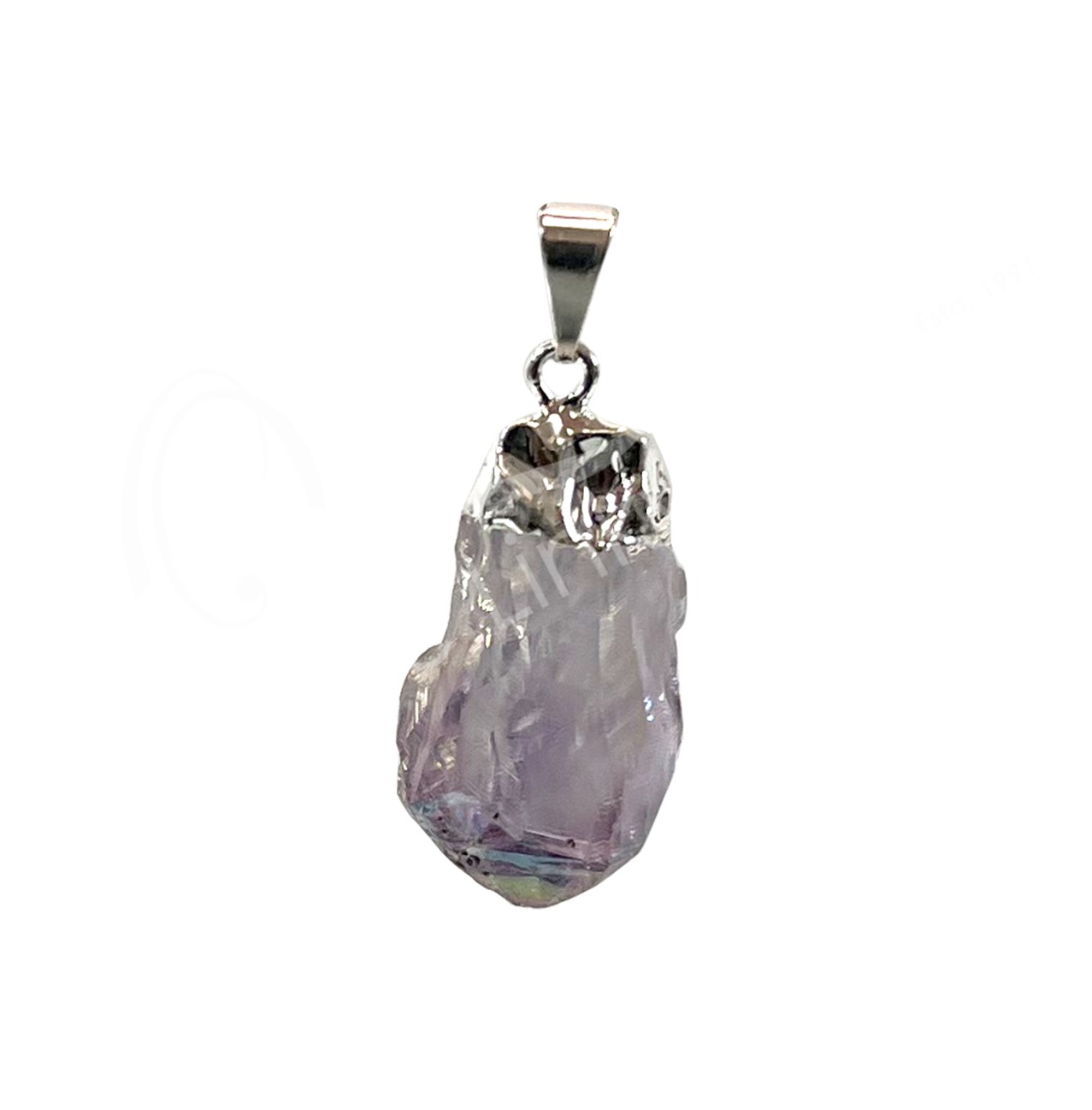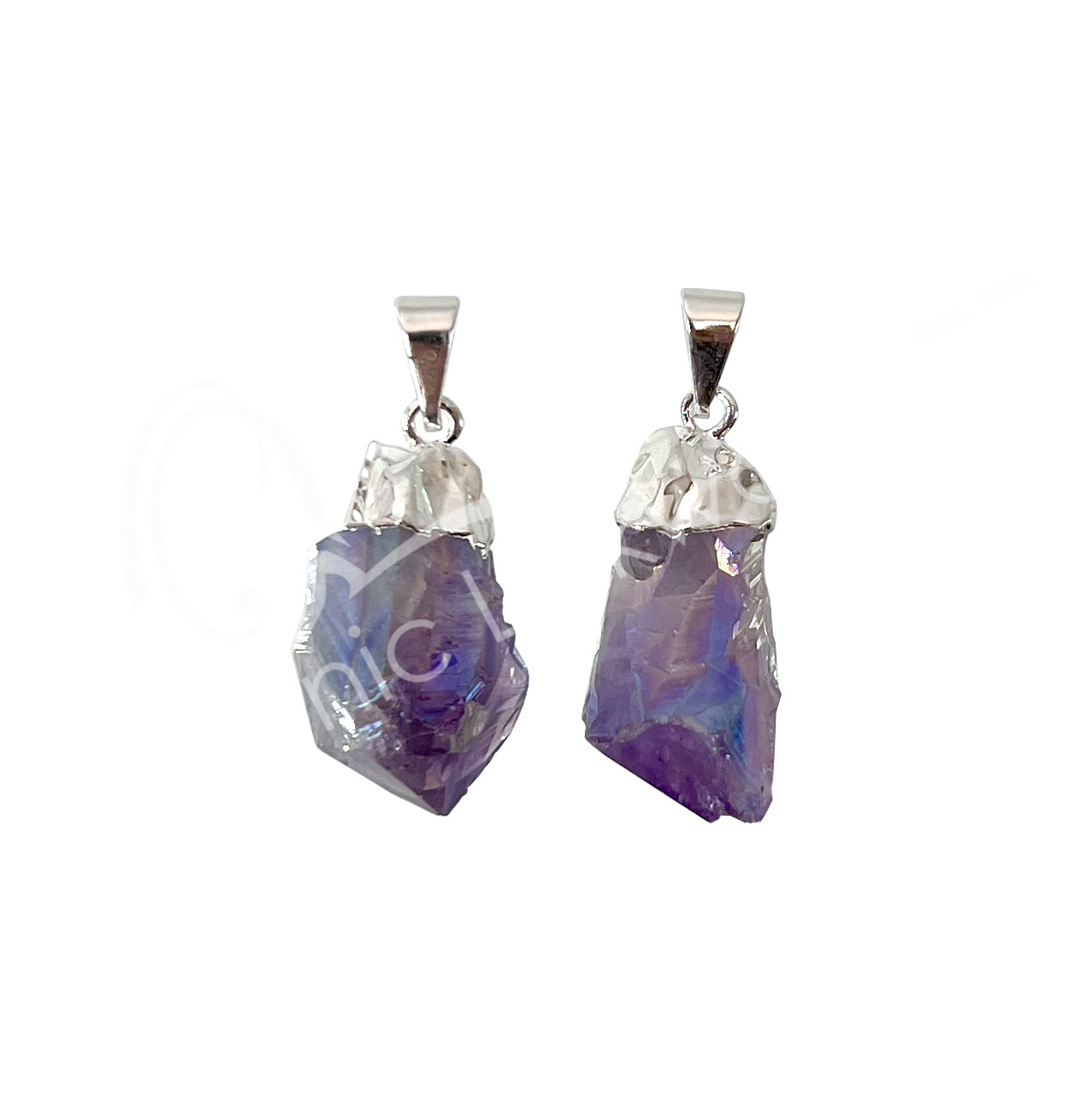 PENDANT – POINT AMETHYST, ROUGH PLATED AB WITH CAP 1-1.5″
