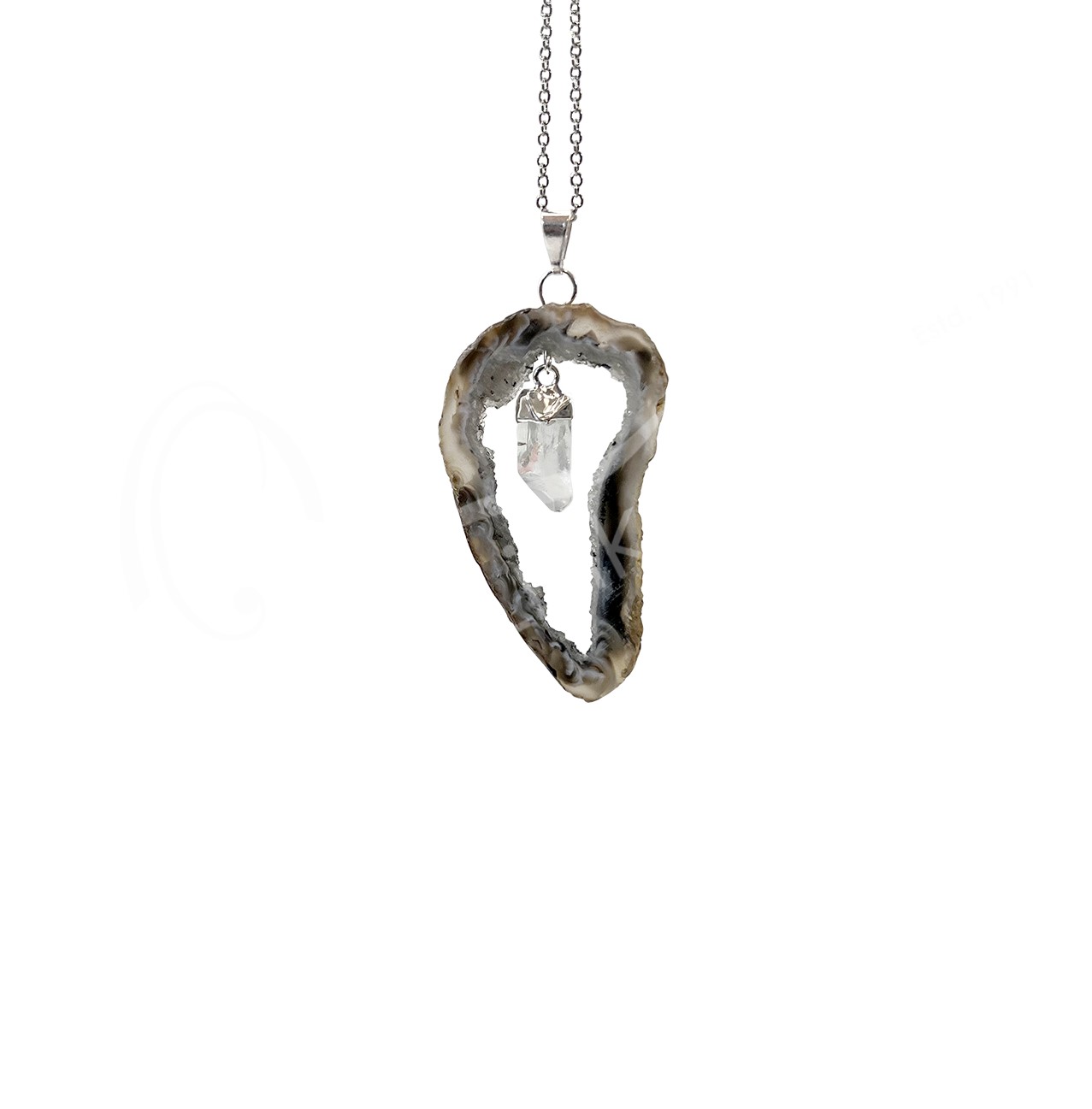 PENDANT – SLICE AGATE WITH CRYSTAL QUARTZ HANGING POINT 1.75-2.5″
