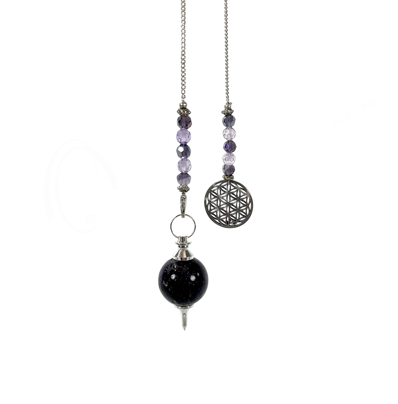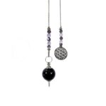 PENDULUM – BALL AMETHYST FLOWER OF LIFE BEADED CHAIN 11″L