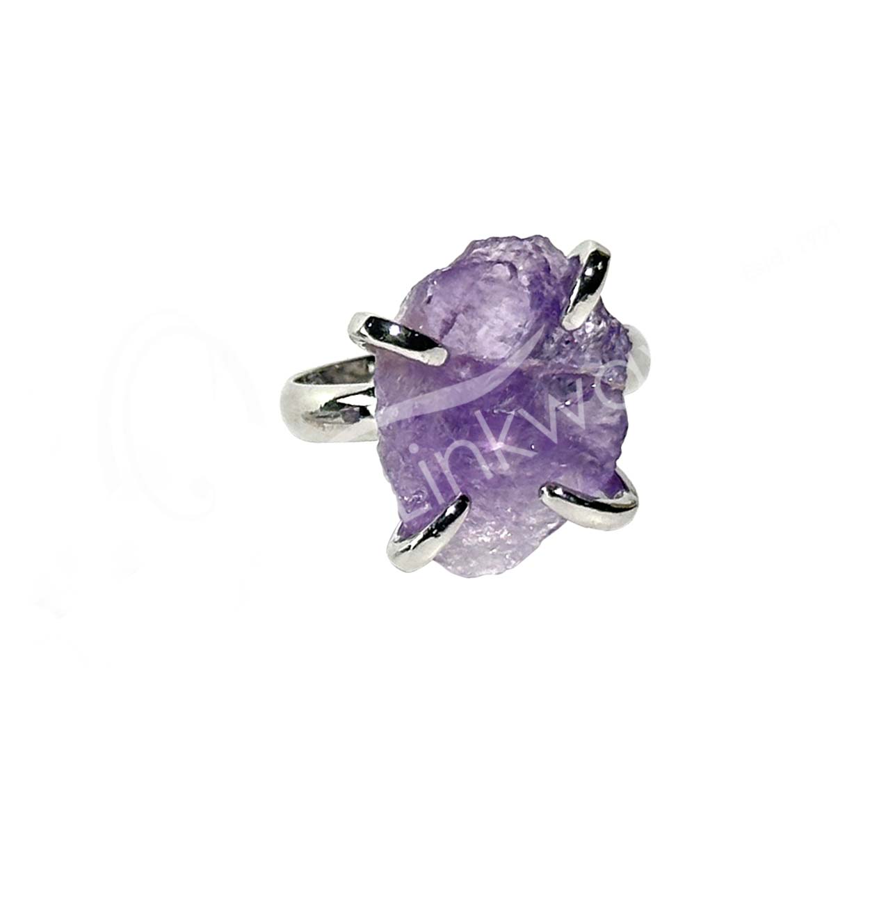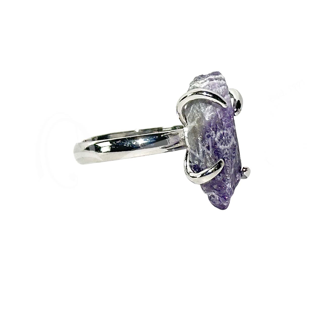 RING – BRASS SILVER PLATED ADJUSTABLE AMETHYST