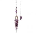 PENDULUM – GLASS TEARDROP AMETHYST CHIPS STONES BEADED CHAIN 11″L