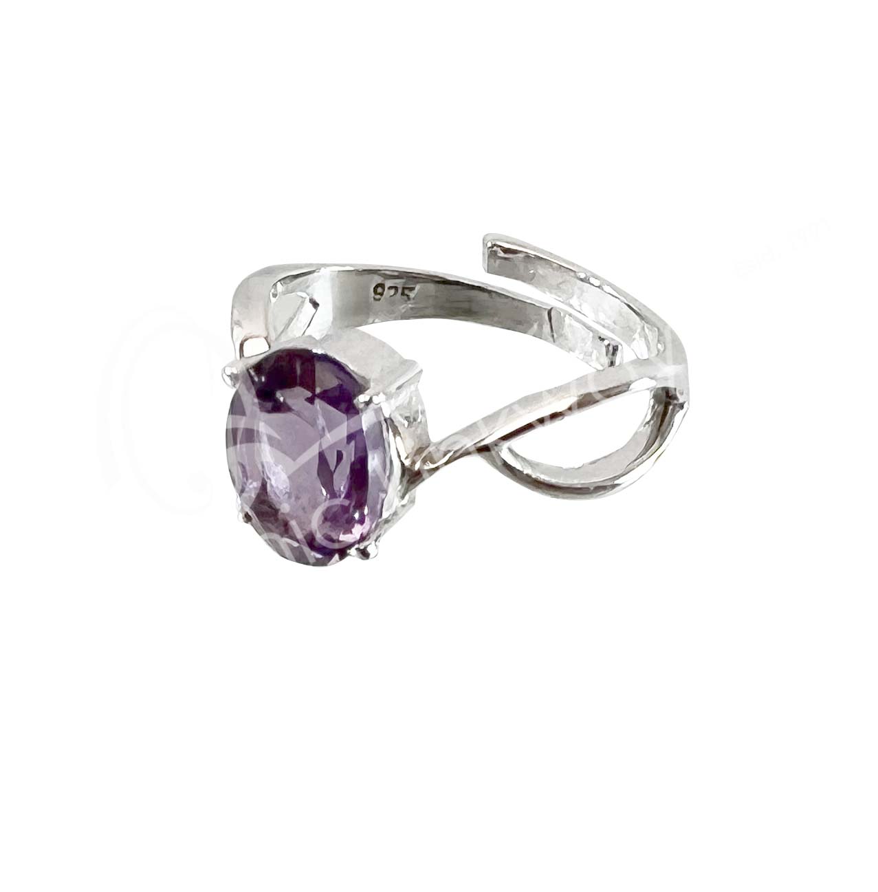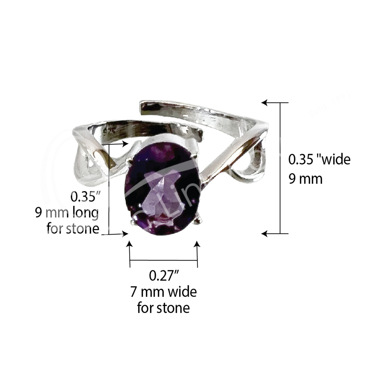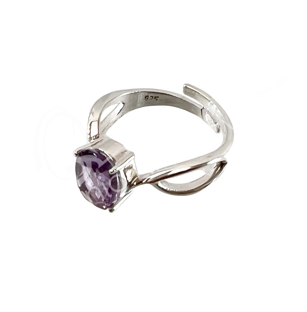 STERLING SILVER – RING, ADJUSTABLE FACETED OVAL AMETHYST