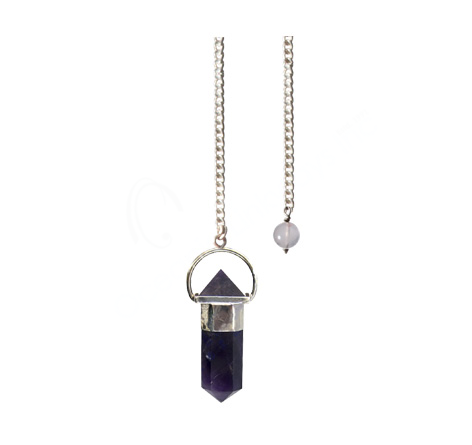 PENDULUM – POINT AMETHYST WITH PYRAMID PLAIN CHAIN 9″L