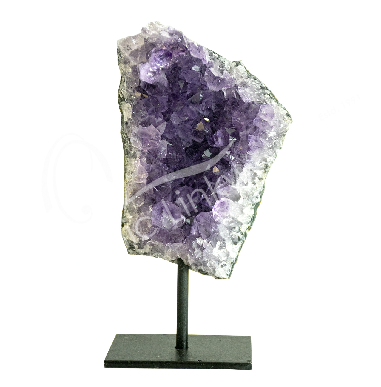 GEODE – AMETHYST, URUGUAYAN C UNPOLISHED ON METAL STAND 6.25”H