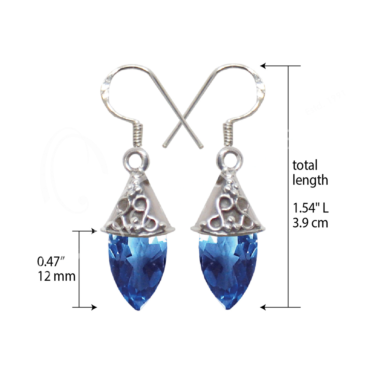 STERLING SILVER – EARRINGS FACETED DROP ALEXITE, BLUE 1.5″