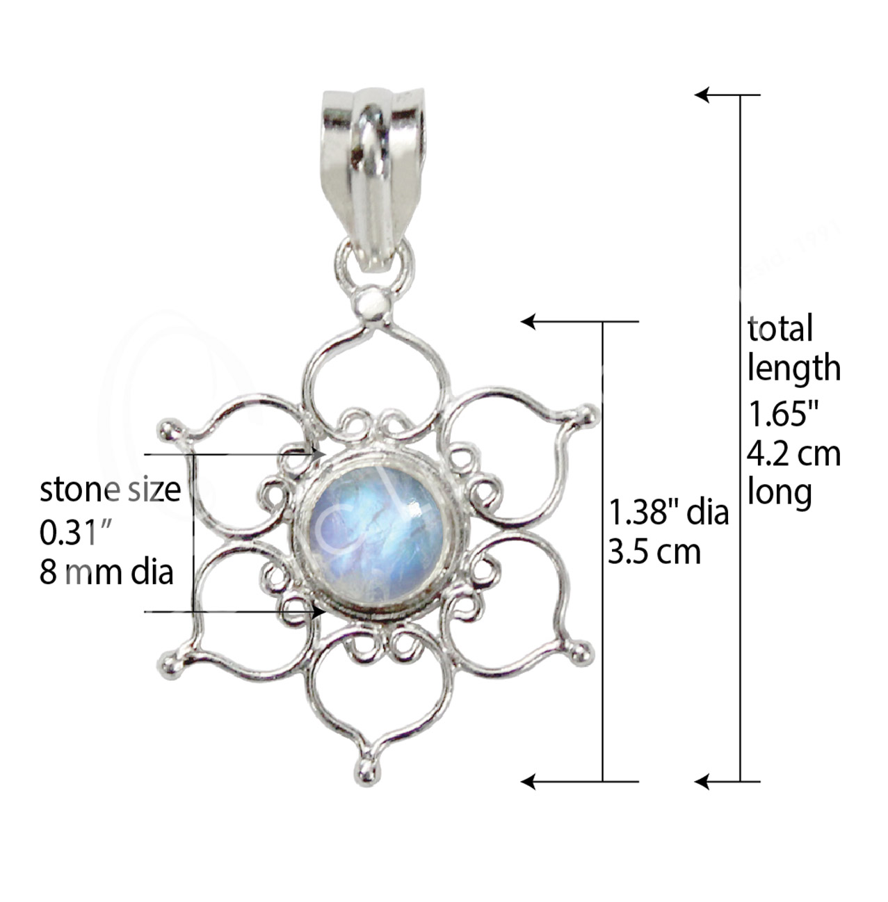 STERLING SILVER – PENDANT LOTUS RAINBOW MOONSTONE 1.6″