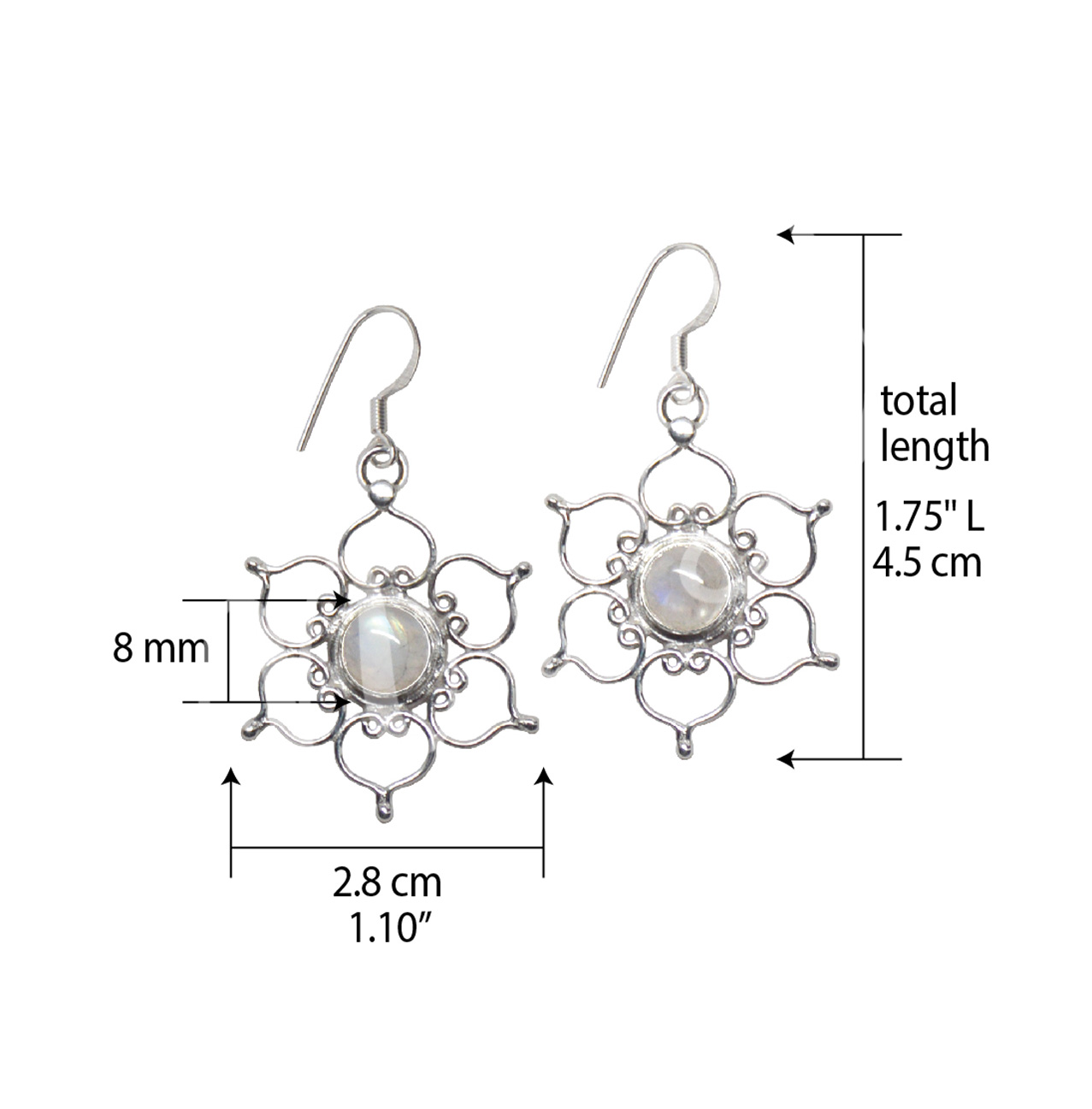 STERLING SILVER – EARRINGS LOTUS RAINBOW MOONSTONE 1.25″DIA. X 2″L