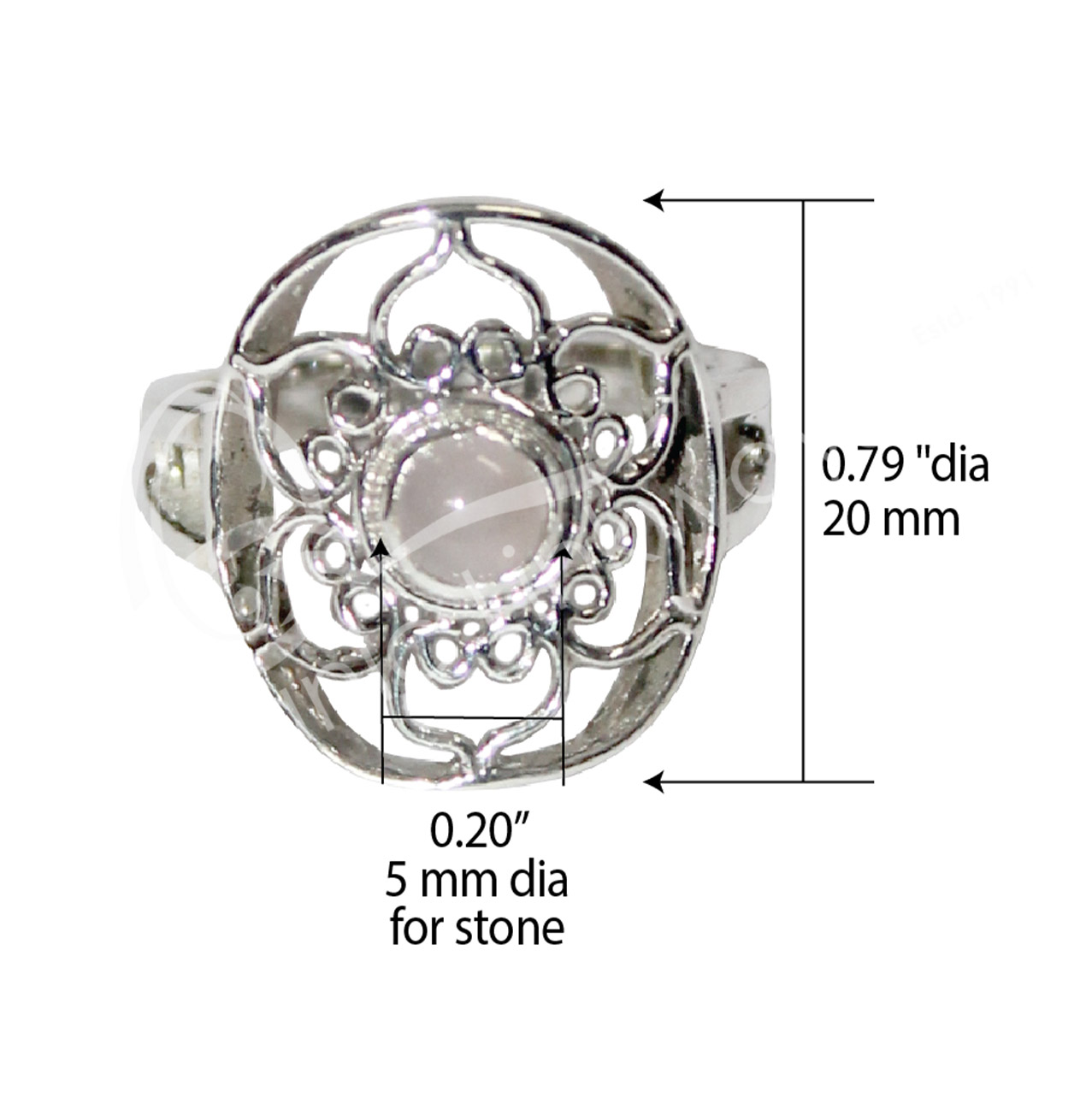 STERLING SILVER – RING, ADJUSTABLE LOTUS RAINBOW MOONSTONE