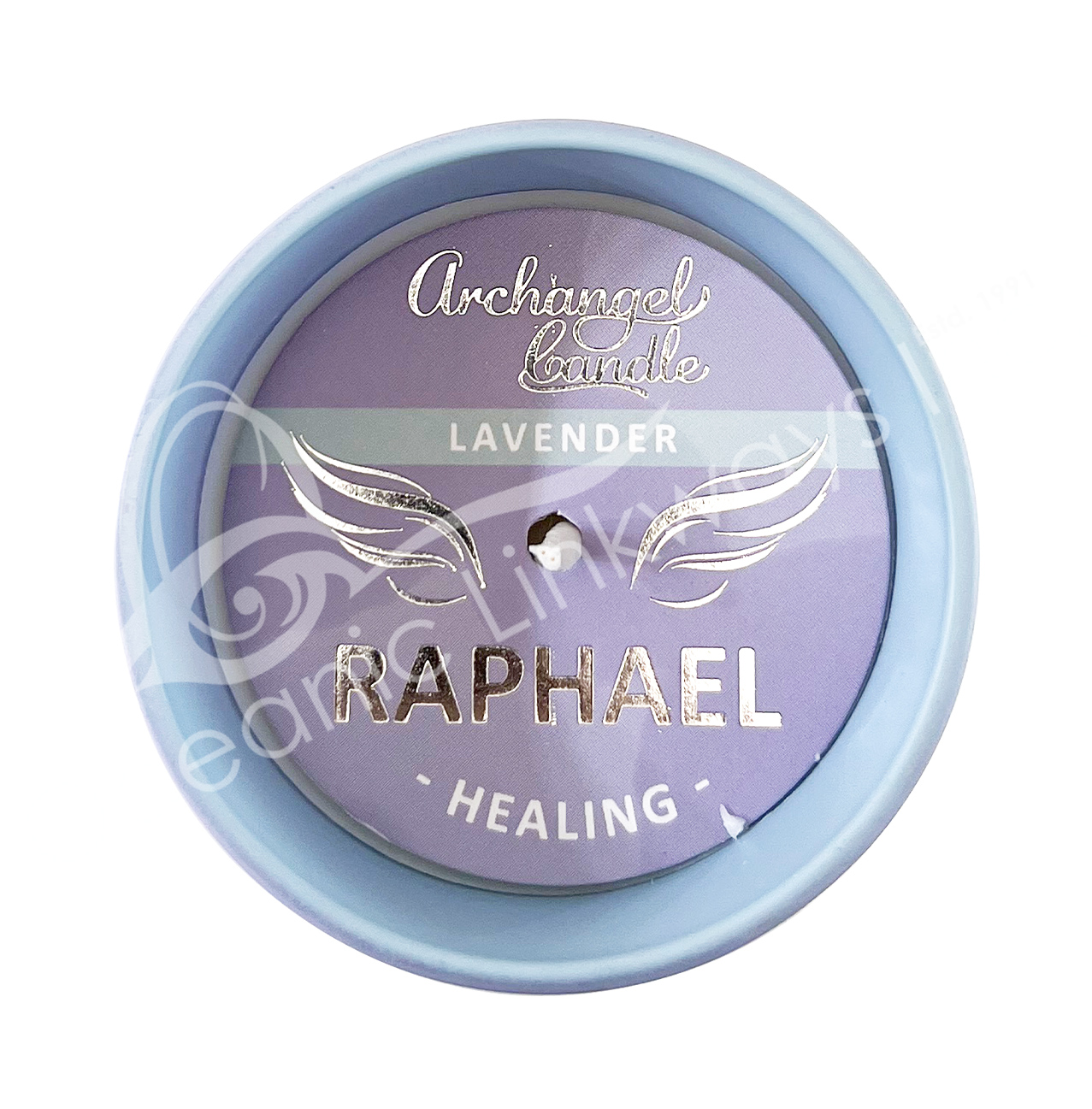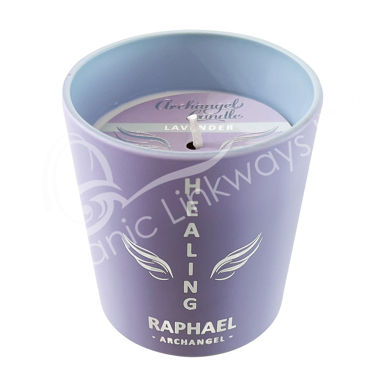 CANDLE – ARCHANGEL RAPHAEL LAVENDER/HEALING 2.75″DIA. X 3″H