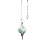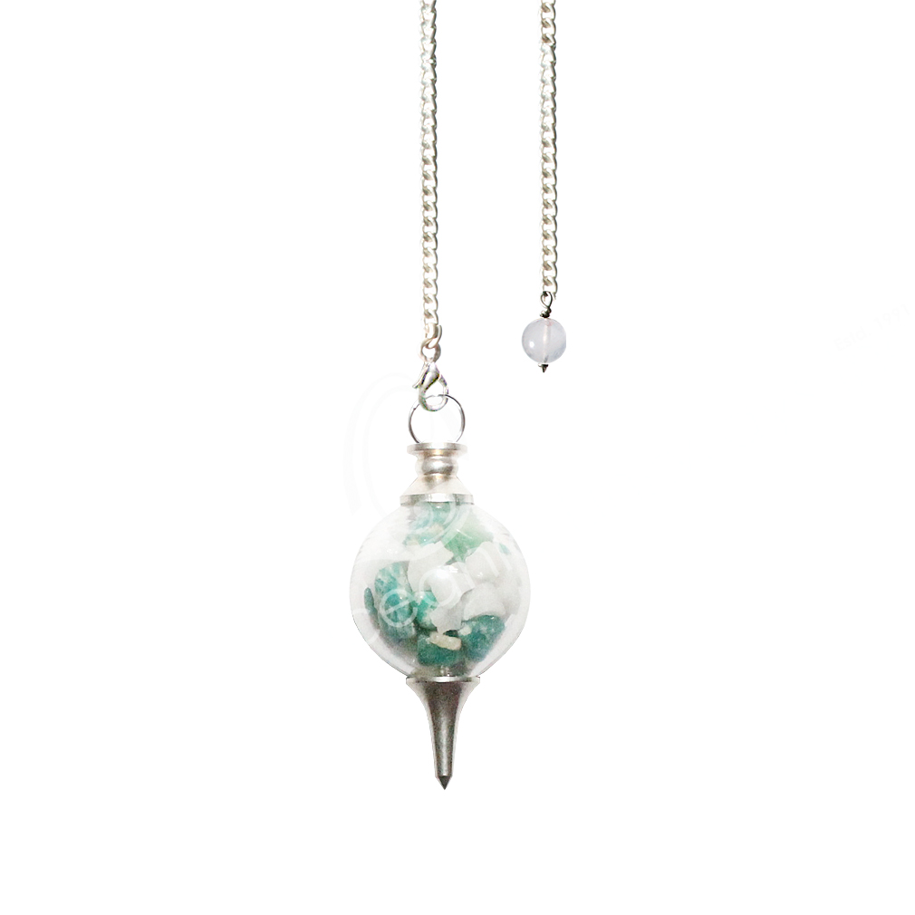 PENDULUM – GLASS BALL BALANCE AMAZONITE & WHITE AGATE CHIPS STONES PLAIN CHAIN 9″L