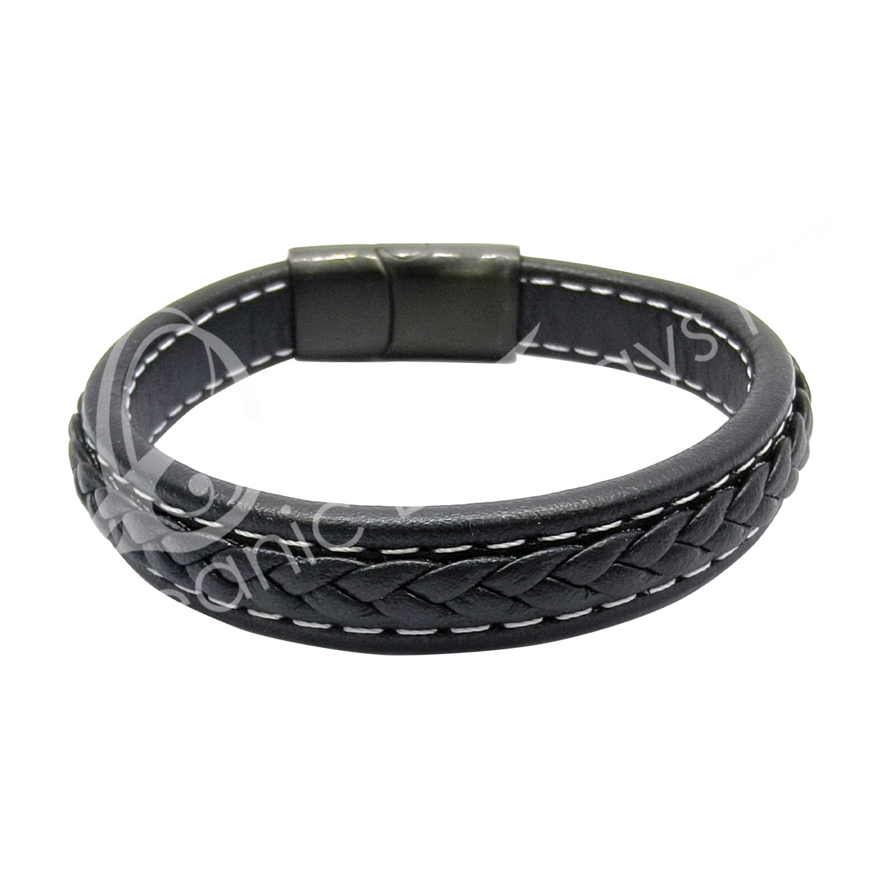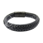 BRACELET – LEATHER, BLACK WITH MAGNETIC CLASP 8.25″