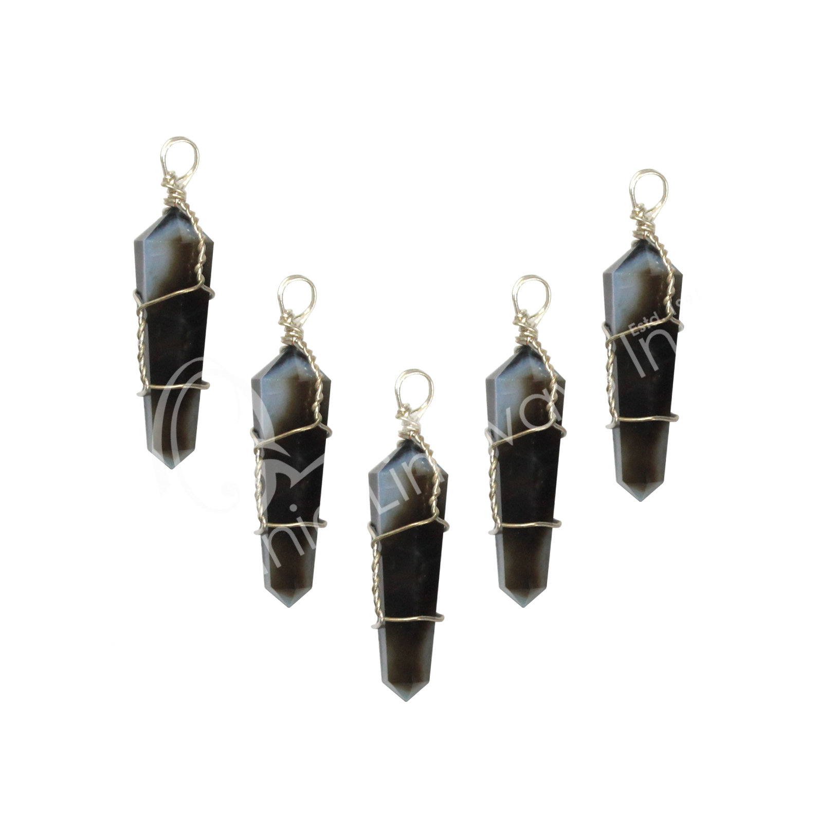 PENDANT – WIRE WRAP ONYX, BLACK (PK 5) 1.5-1.75″