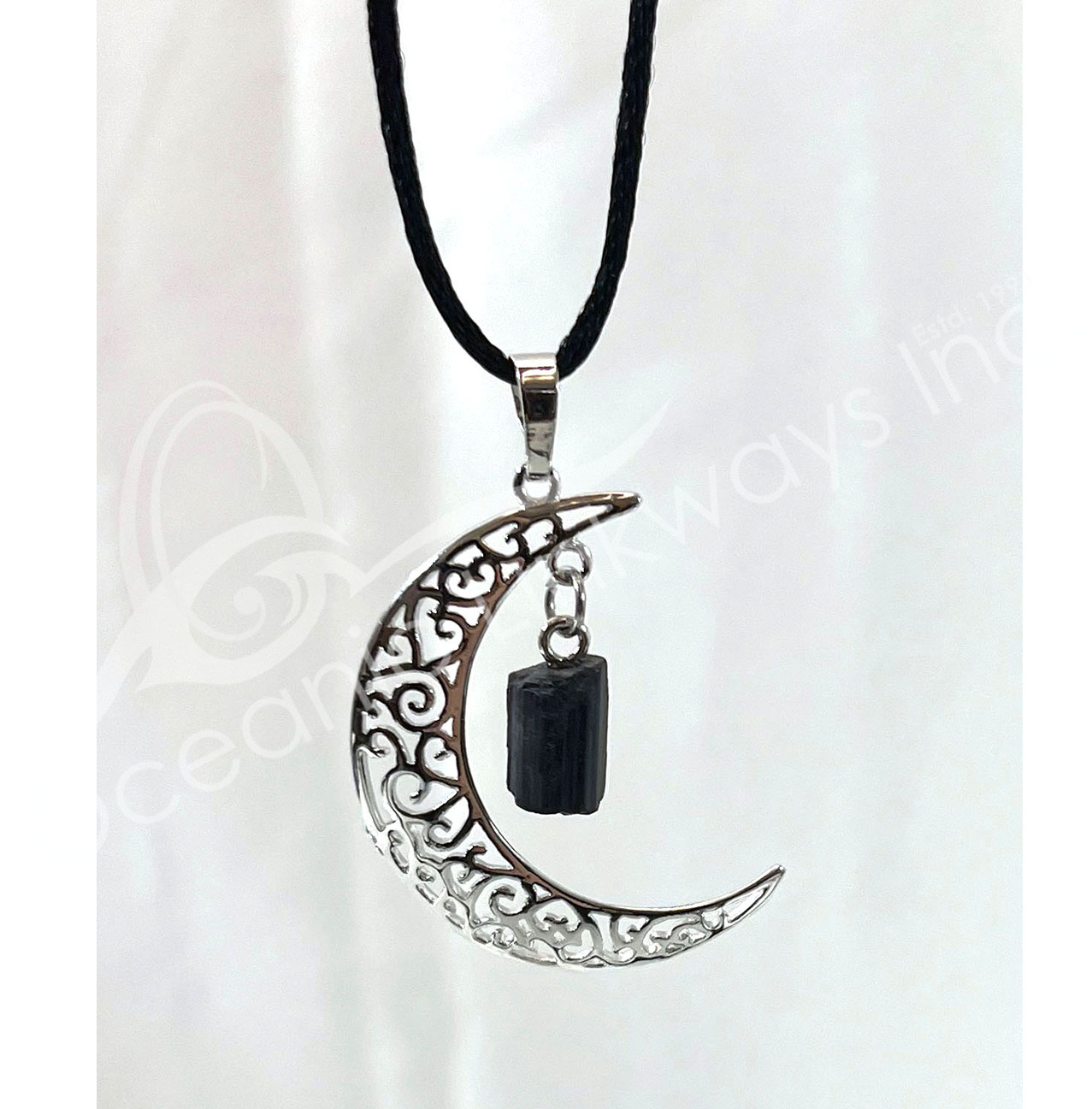 PENDANT – MOON WITH HANGING BLACK TOURMALINE (PK 3) 1.5″