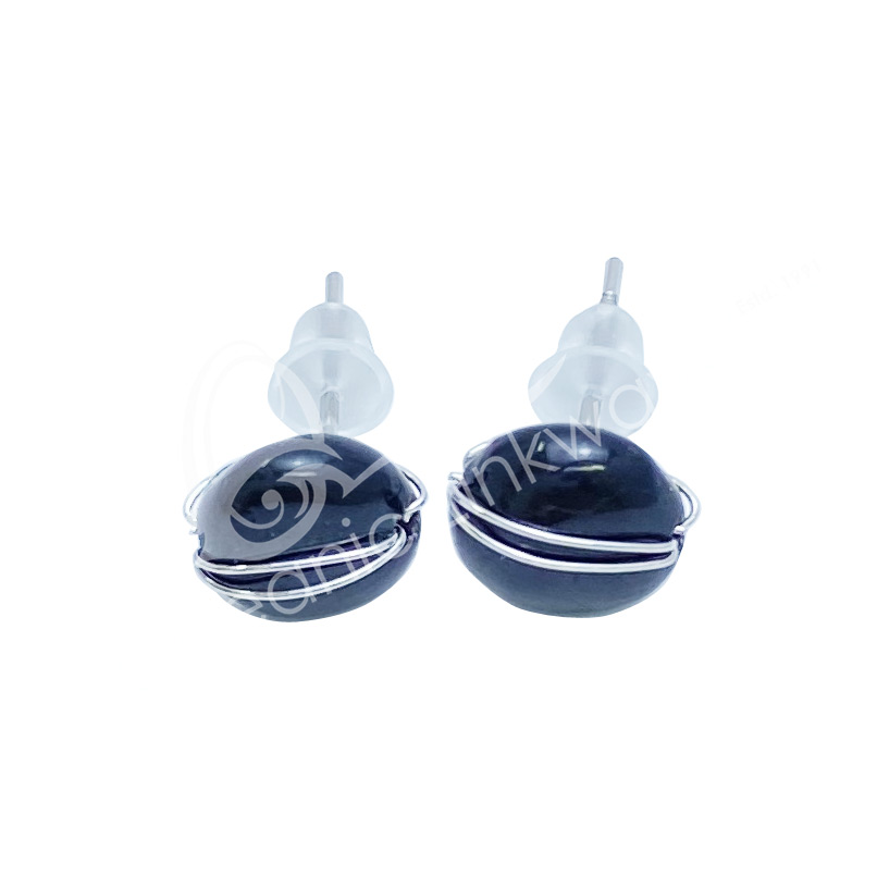 (CLOSE OUT) STERLING SILVER – EARRING STUDS TOURMALINE, BLACK WIRE WRAP 7-8 MM