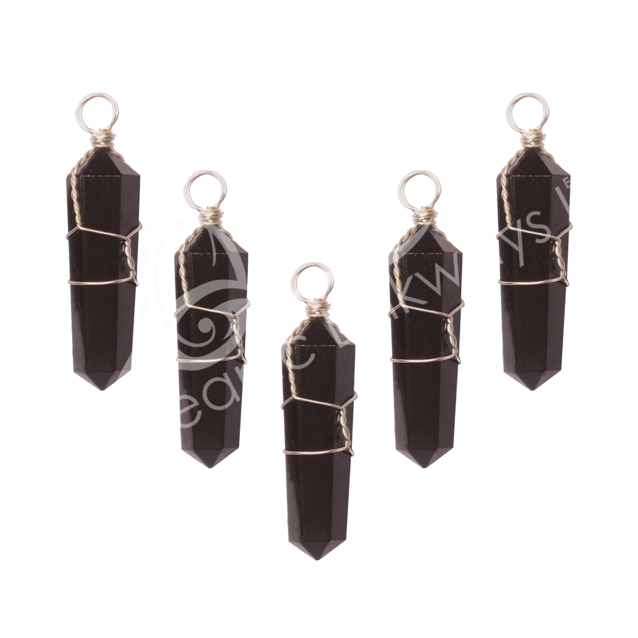PENDANT – WIRE WRAP TOURMALINE, BLACK (PK 5) 1.5″