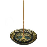 INCENSE HOLDER – TREE OF LIFE BLACK & GOLD 4.85″DIA. X 0.80″T