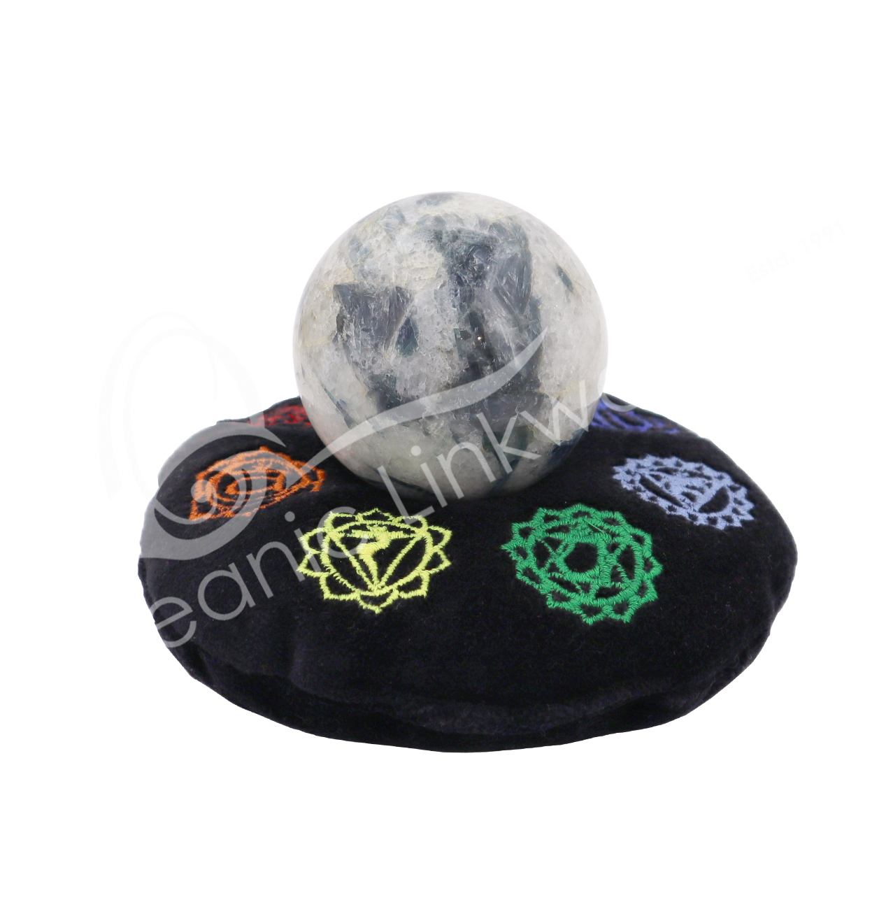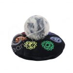 (CLOSE OUT) CUSHION – VELVET, BLACK WITH EMBROIDERY CHAKRAS 4.75″DIA