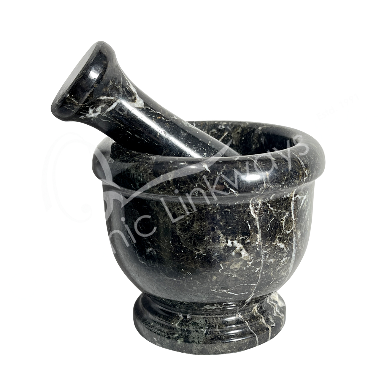 MORTAR & PESTLE – MARBLE, BLACK ZEBRA 2.5″