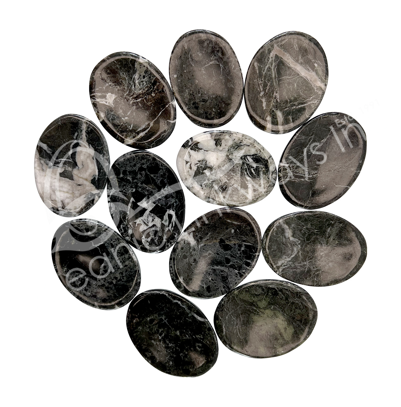 WORRY STONES – MARBLE, BLACK ZEBRA (DZ) 1.75-2″