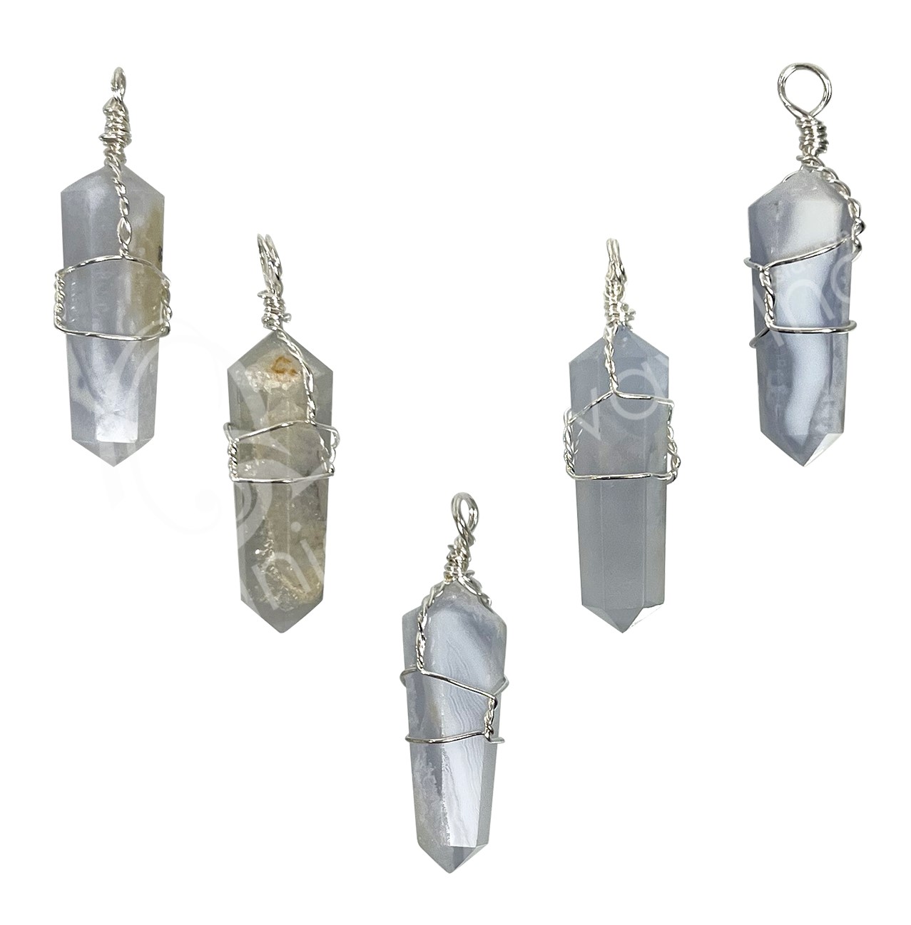 PENDANT – WIRE WRAP AGATE, BLUE LACE (PK 5) 1.5″