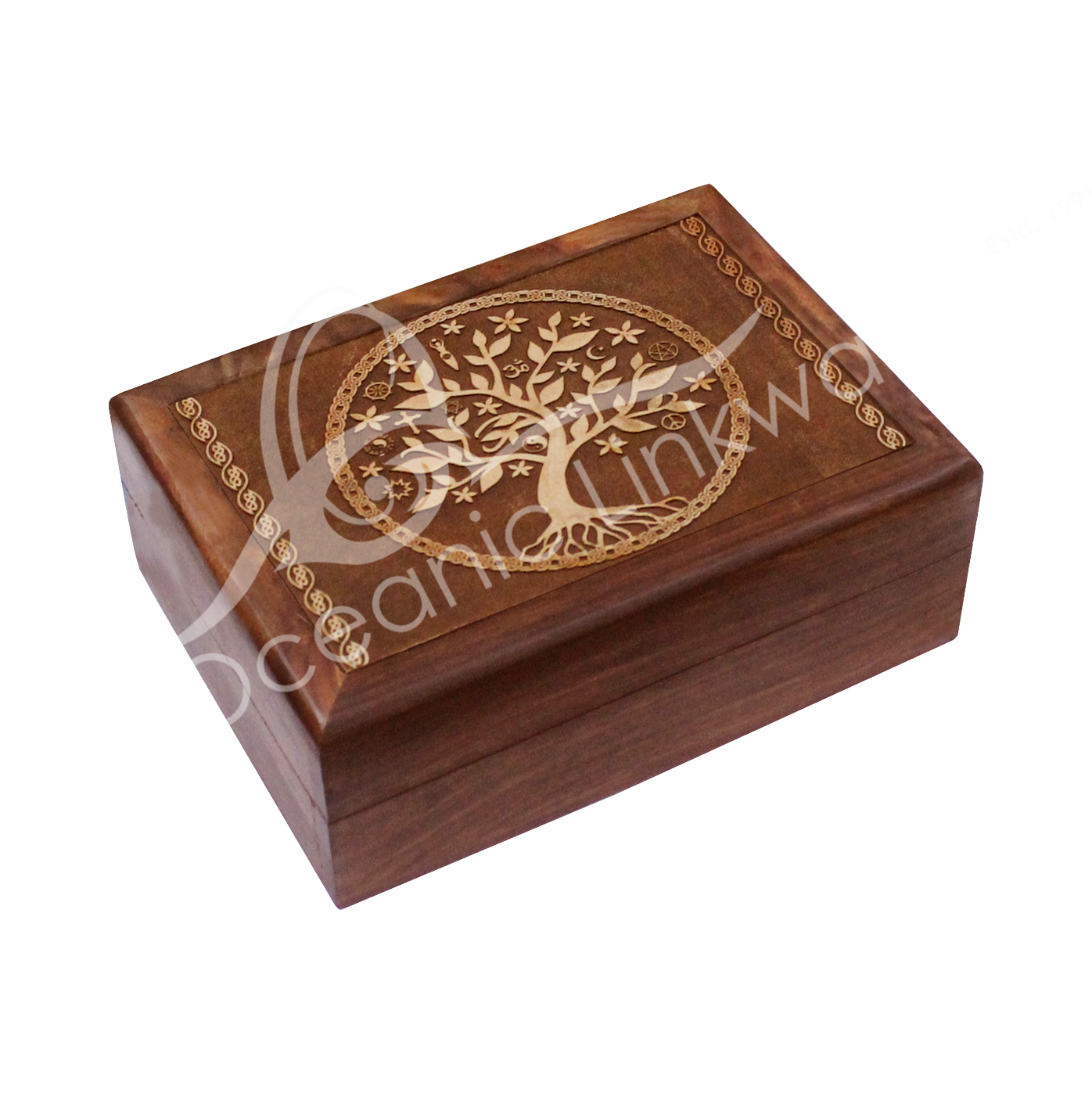 BOX – ACACIA WOOD LASER ENGRAVED TREE OF LIFE 5 X 7″