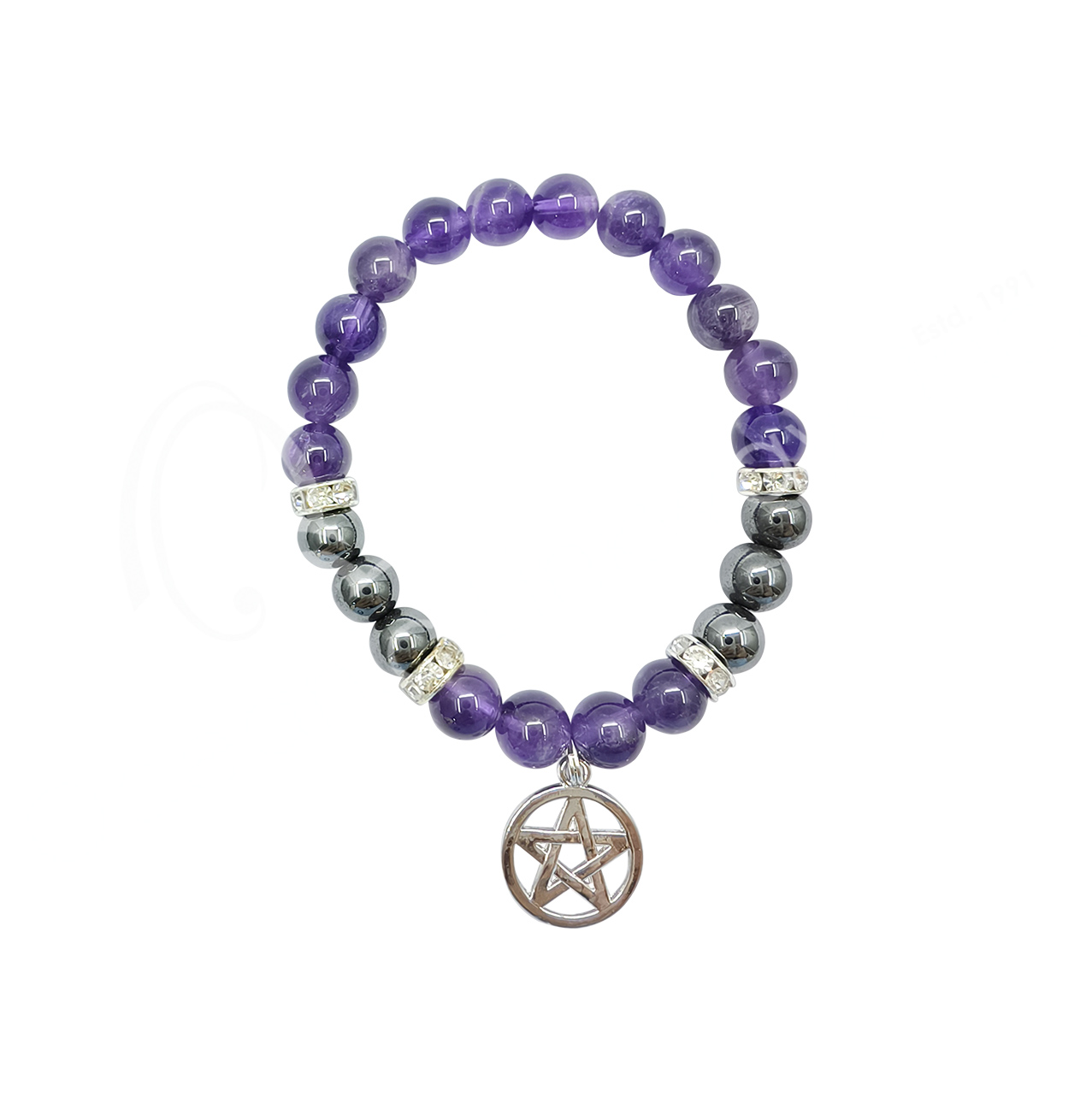 BRACELET – AMETHYST & HEMATITE PENTACLE (8-8.5 MM) 7.15-7.25″