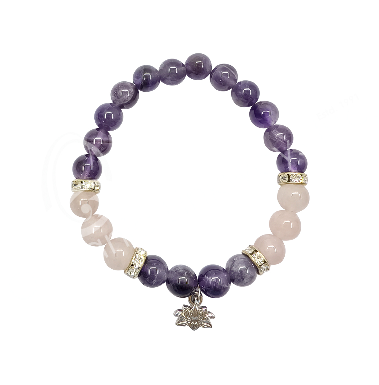BRACELET – AMETHYST & ROSE QUARTZ LOTUS (8-8.5 MM) 7.15-7.25″