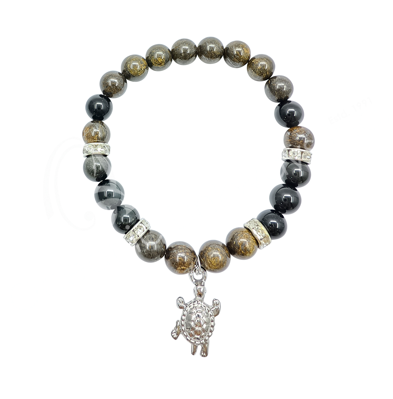 BRACELET – AXINITE & RAINBOW OBSIDIAN TURTLE (8-8.5 MM) 7.15-7.25″