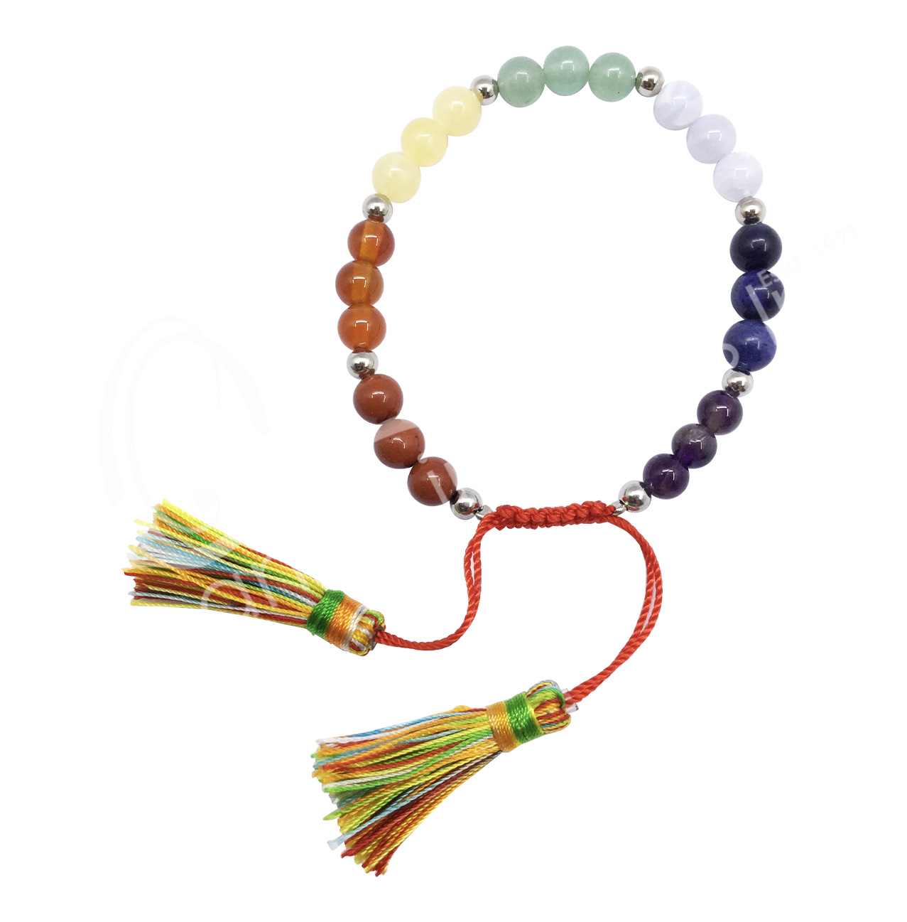 BRACELET – CHAKRA WITH TASSELS ADJUSTABLE (4 MM) 6.75-9.75″
