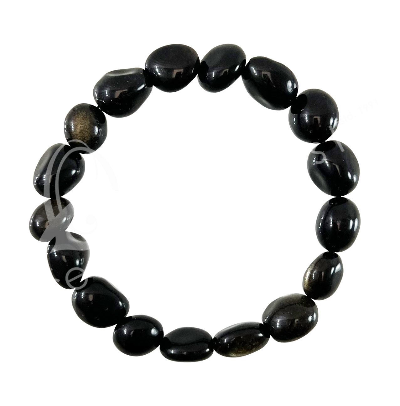 BRACELET – TUMBLED STONES OBSIDIAN, GOLDEN SHEEN (8 X 10 MM) 7.45-7.5″