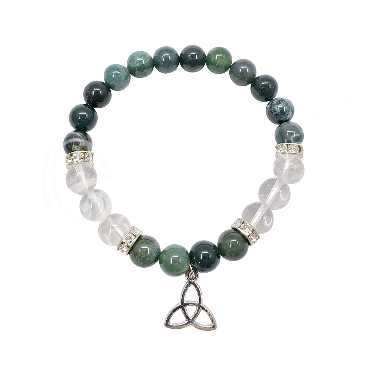 Deprecated: Function Yoast\WP\SEO\Helpers\Request_Helper::is_rest_request is deprecated since version Yoast SEO 23.6! Use wp_is_serving_rest_request instead. in /var/www/html/wp-includes/functions.php on line 6121 Green Moss Agate & Quartz Bracelet | Oceanic Linkways Inc. in NJ