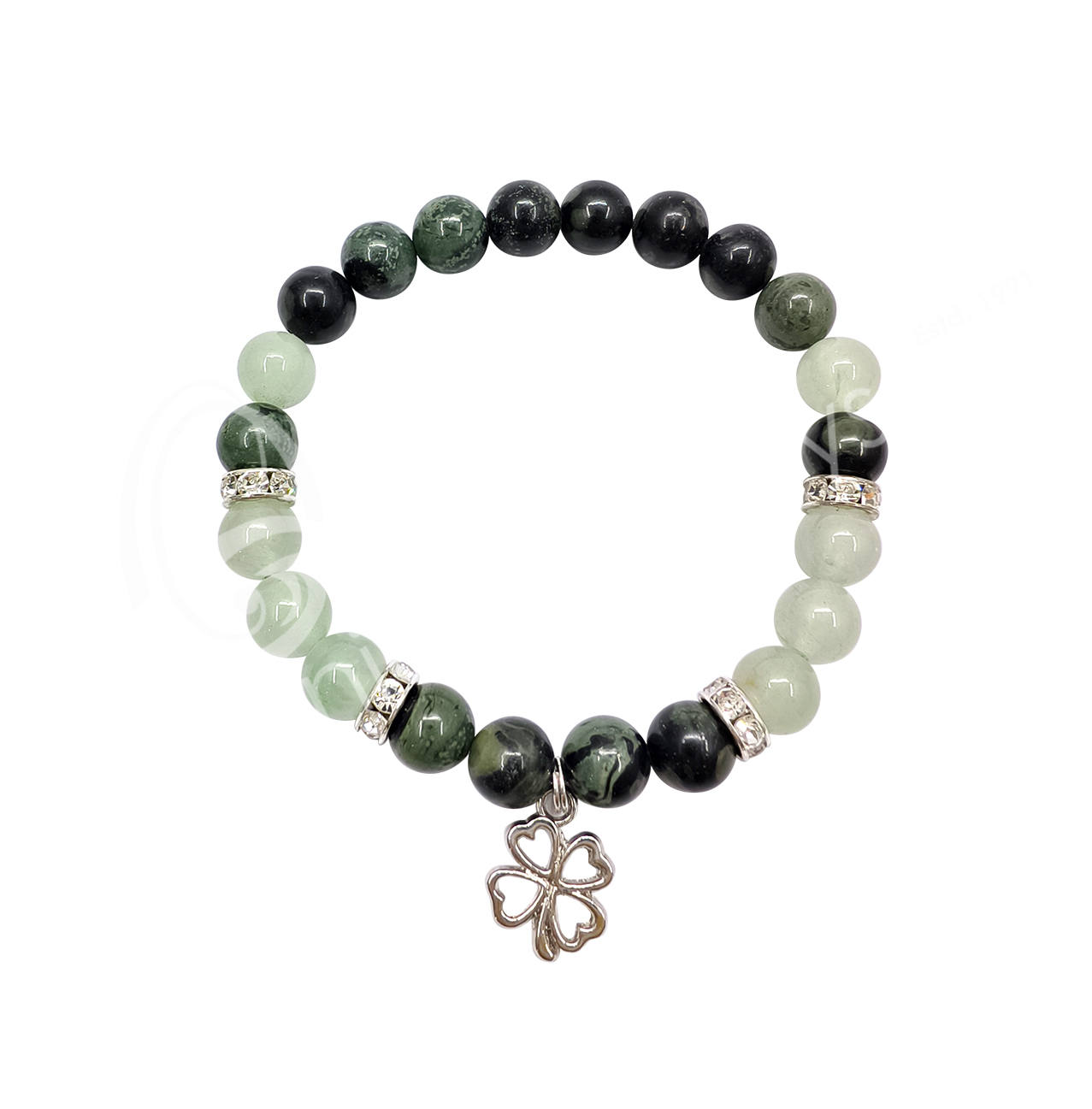 BRACELET – JASPER, KAMBABA & GREEN AVENTURINE LUCKY CLOVER (8-8.5 MM) 7.15-7.25″