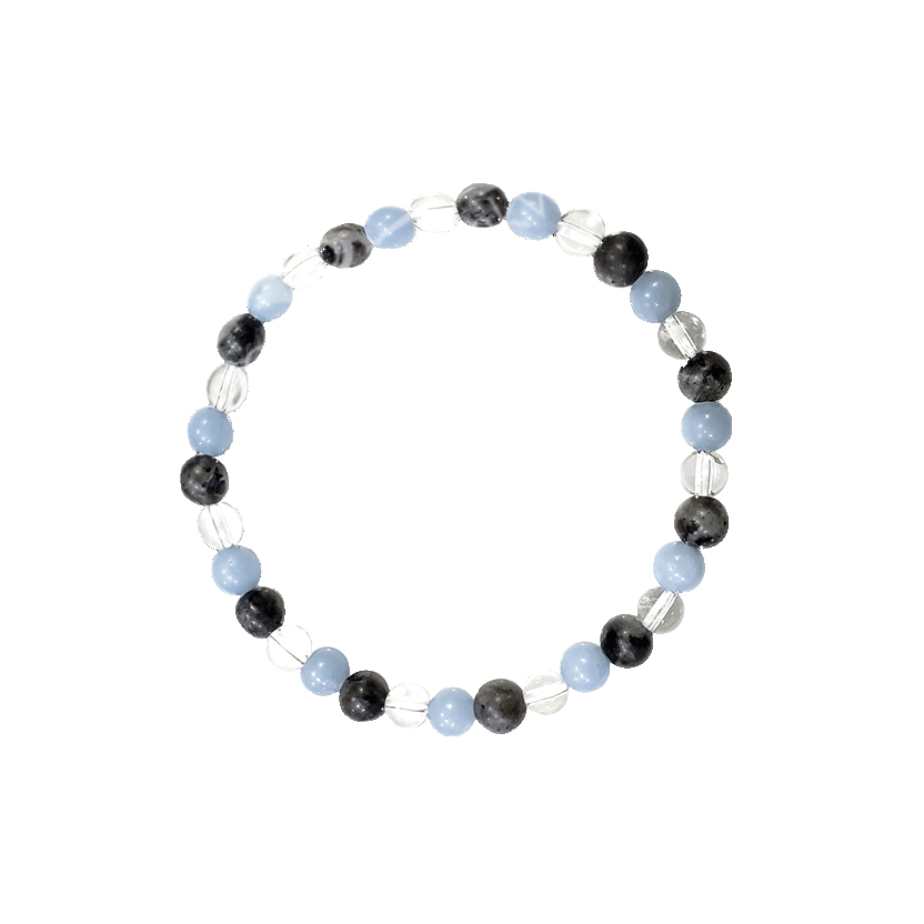 BRACELET – LARVIKITE, ANGELITE, CRYSTAL QUARTZ (6-6.5 MM) 7.15-7.25″