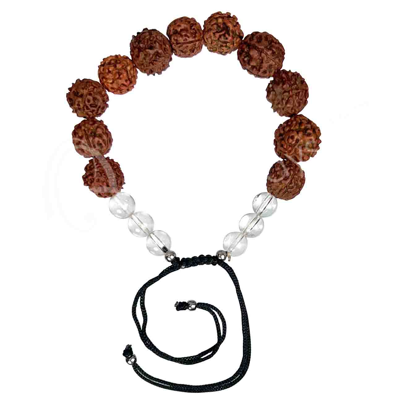 BRACELET – RUDRAKSHA & CRYSTAL QUARTZ ADJUSTABLE (12 MM)