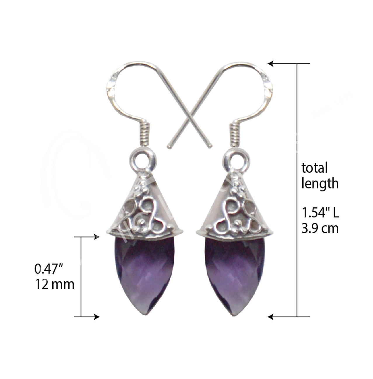 STERLING SILVER – EARRINGS FACETED DROP AMETHYST 1.5″