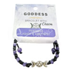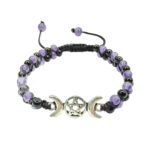 BRACELET – ADJUSTABLE DOUBLE ROW TRIPLE MOON CHARM WITH BLACK AGATE & AMETHYST (4 MM) 6.7-8.65″