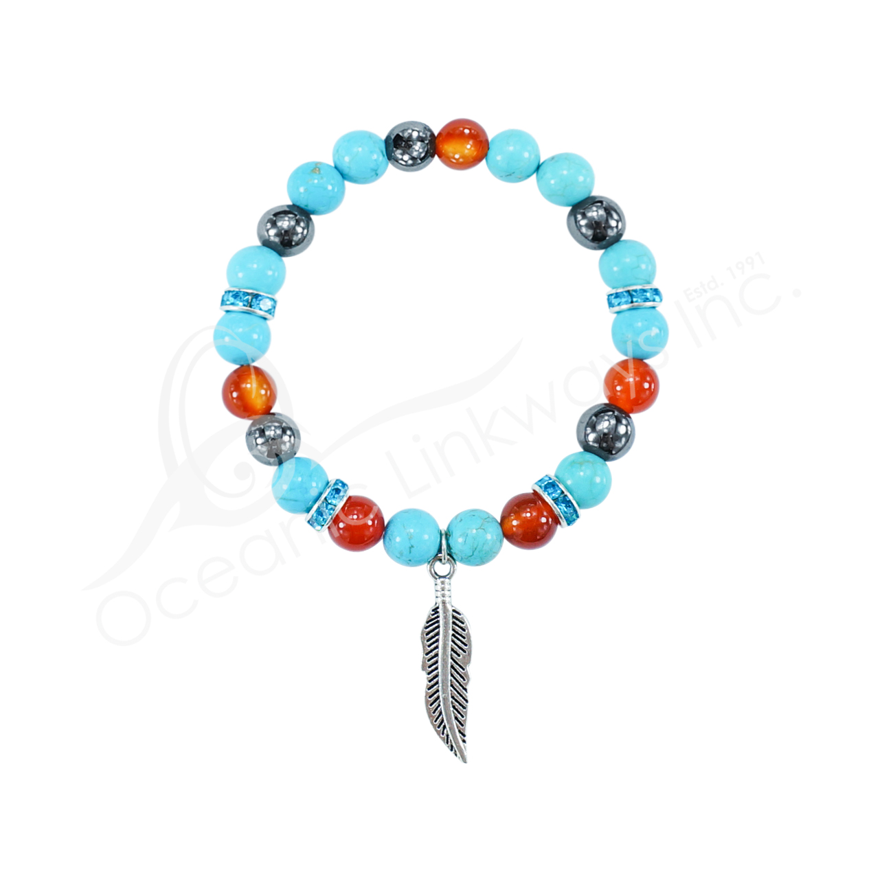 Deprecated: Function Yoast\WP\SEO\Helpers\Request_Helper::is_rest_request is deprecated since version Yoast SEO 23.6! Use wp_is_serving_rest_request instead. in /var/www/html/wp-includes/functions.php on line 6121 Bracelet Turquoise Carnelian Hematite Feather | Oceanic Linkways