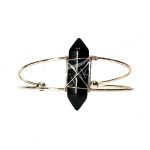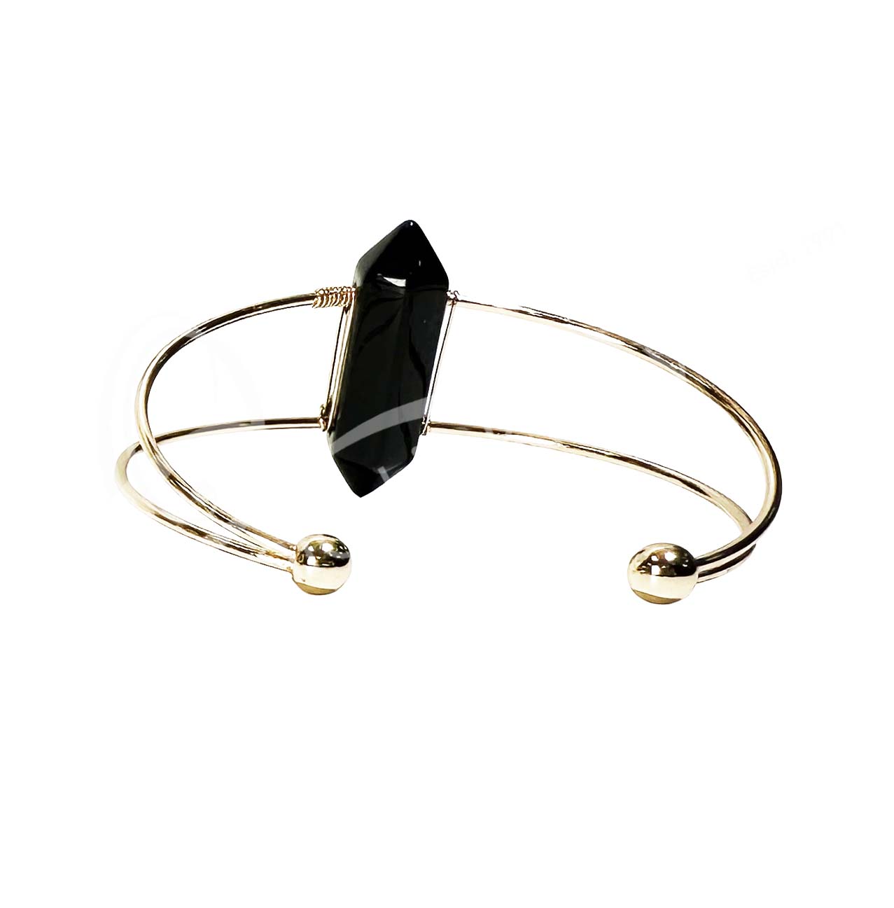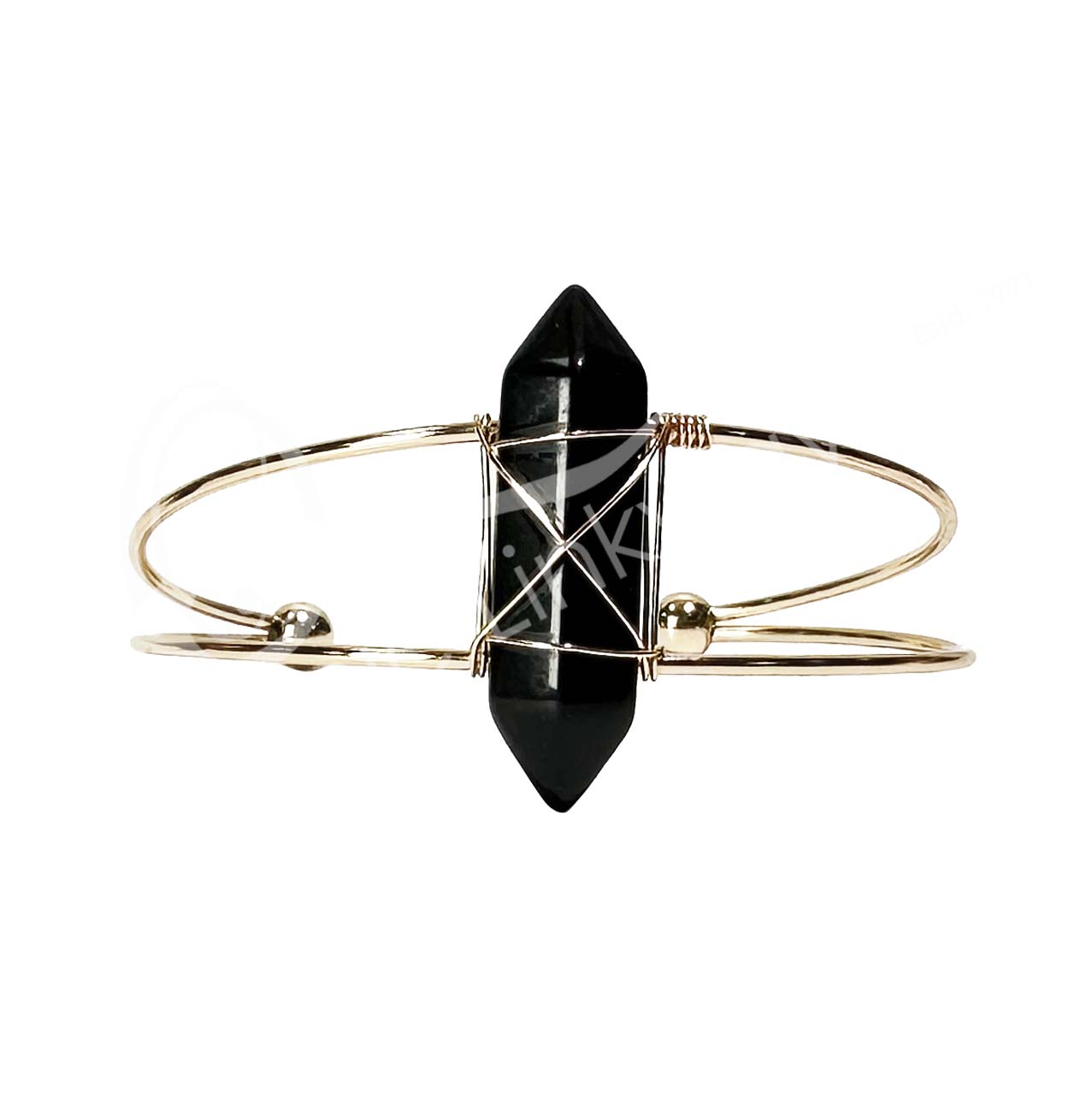 BRACELET – BRASS ADJUSTABLE DOUBLE TERMINATED POINT OBSIDIAN, BLACK 2.35-2.5″DIA.