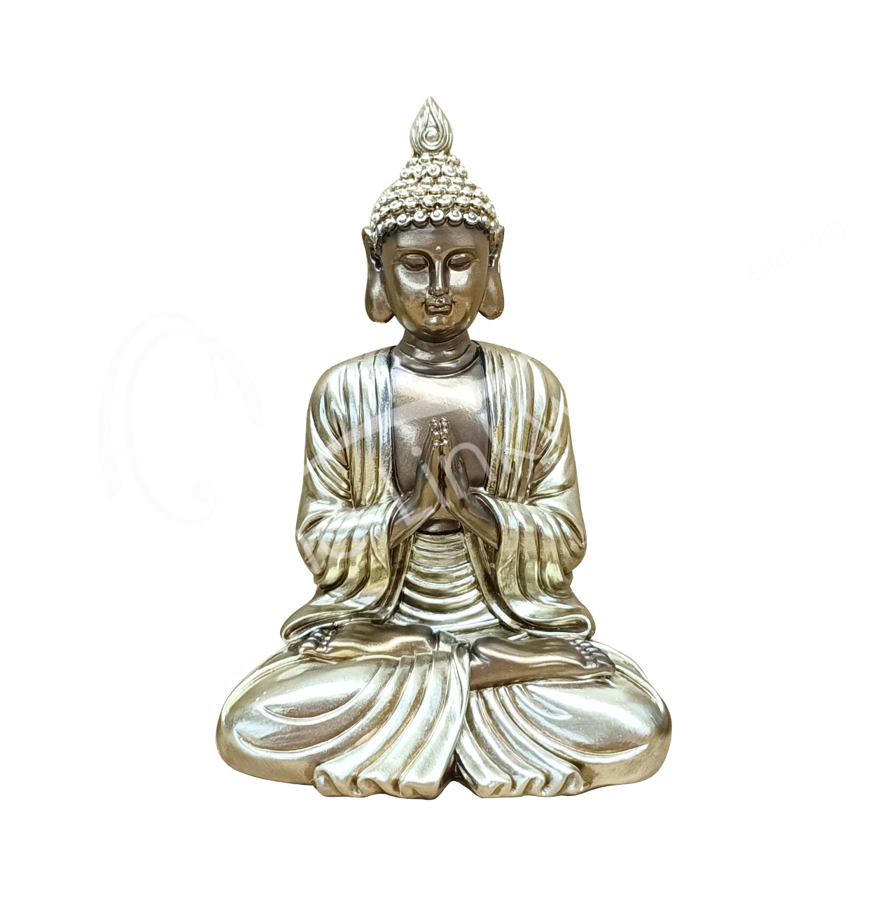 STATUE – BUDDHA, BRONZE IN PRAYER 5.5″L X 8.25″H