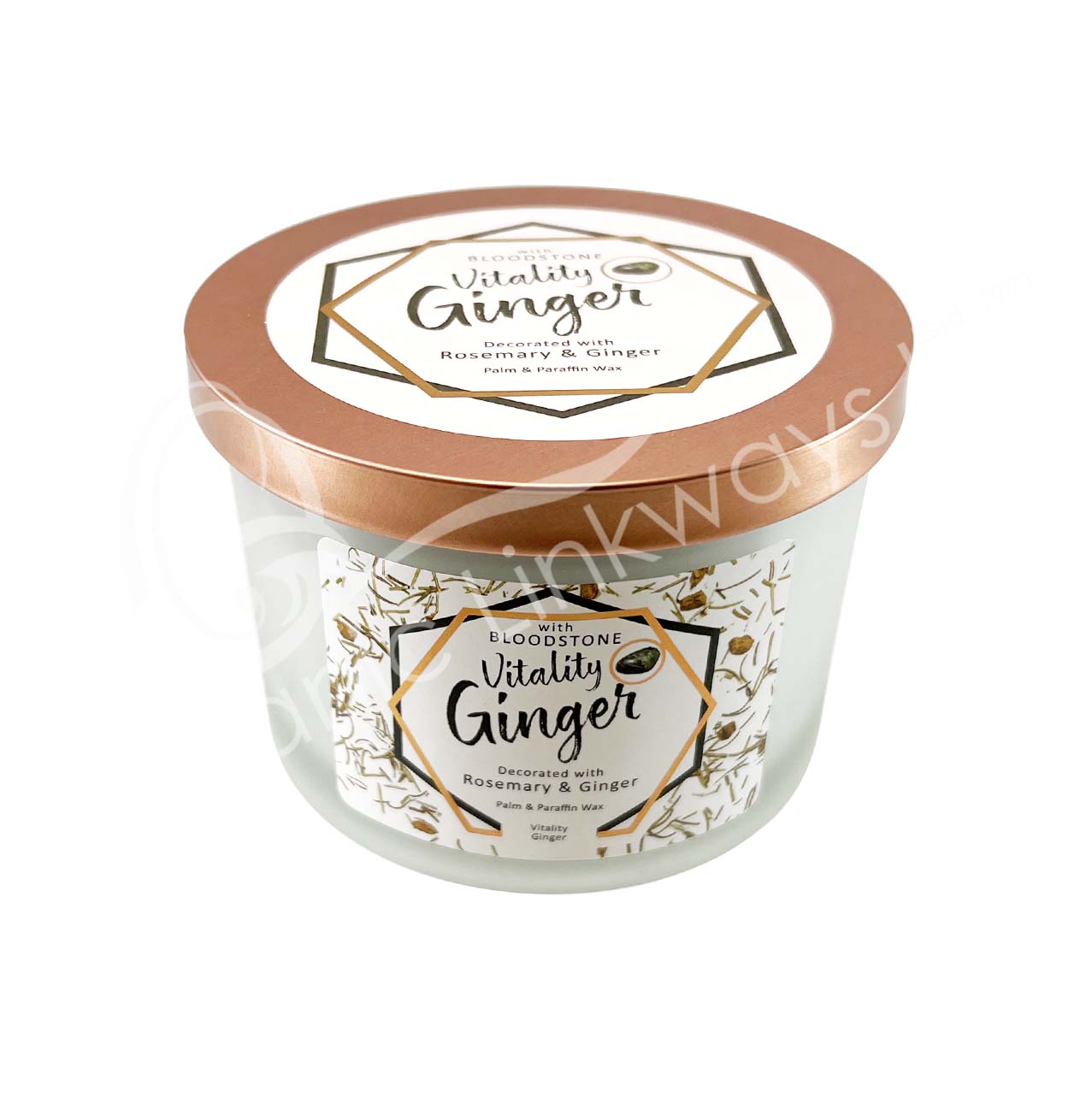 CANDLE – AROMATHERAPY GINGER/VITALITY BLOODSTONE 3″H X 3.25″DIA.