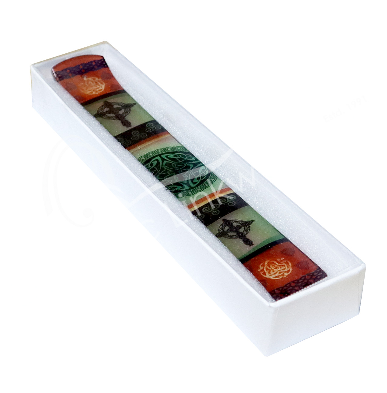 INCENSE HOLDER – GLASS PRINTED CELTIC 10 X 1.5″